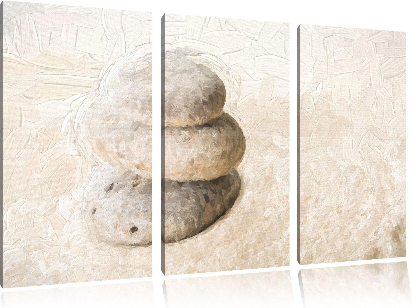 Pixxprint Steine im Sand mit Muster Pinsel Effekt 3-Teiler Leinwandbild 120x80 Bild auf Leinwand