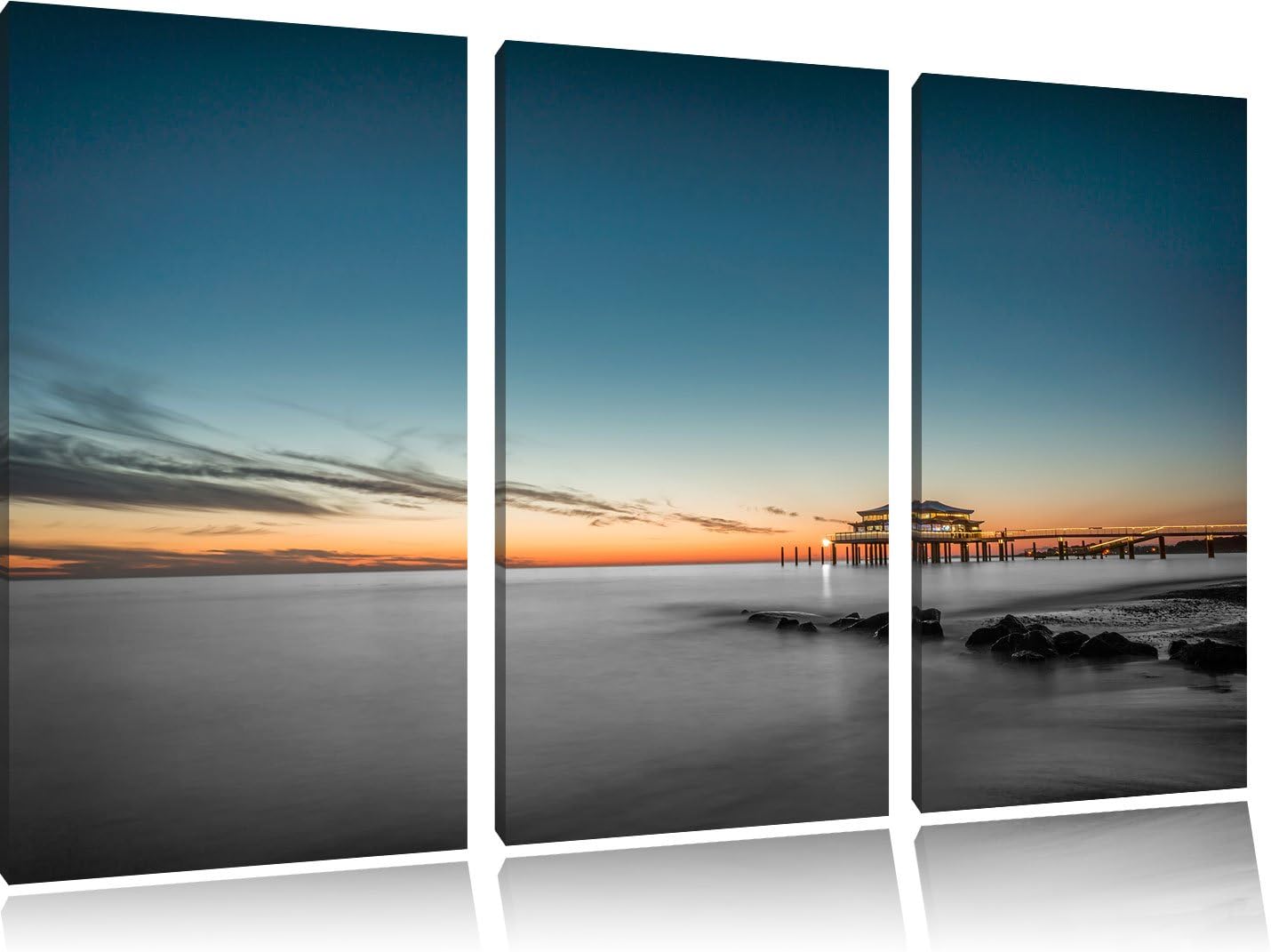 Pixxprint Timmendorfer Strand bei Sonnenuntergang Schwarz/Weiss 3-Teiler Leinwandbild 120x80 Bild au