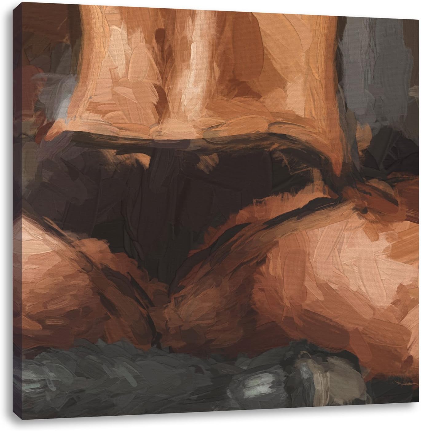 Pixxprint Trainierter Frauenkörper von hinten Pinsel Effekt, Format: 70x70 auf Leinwand, 70x70