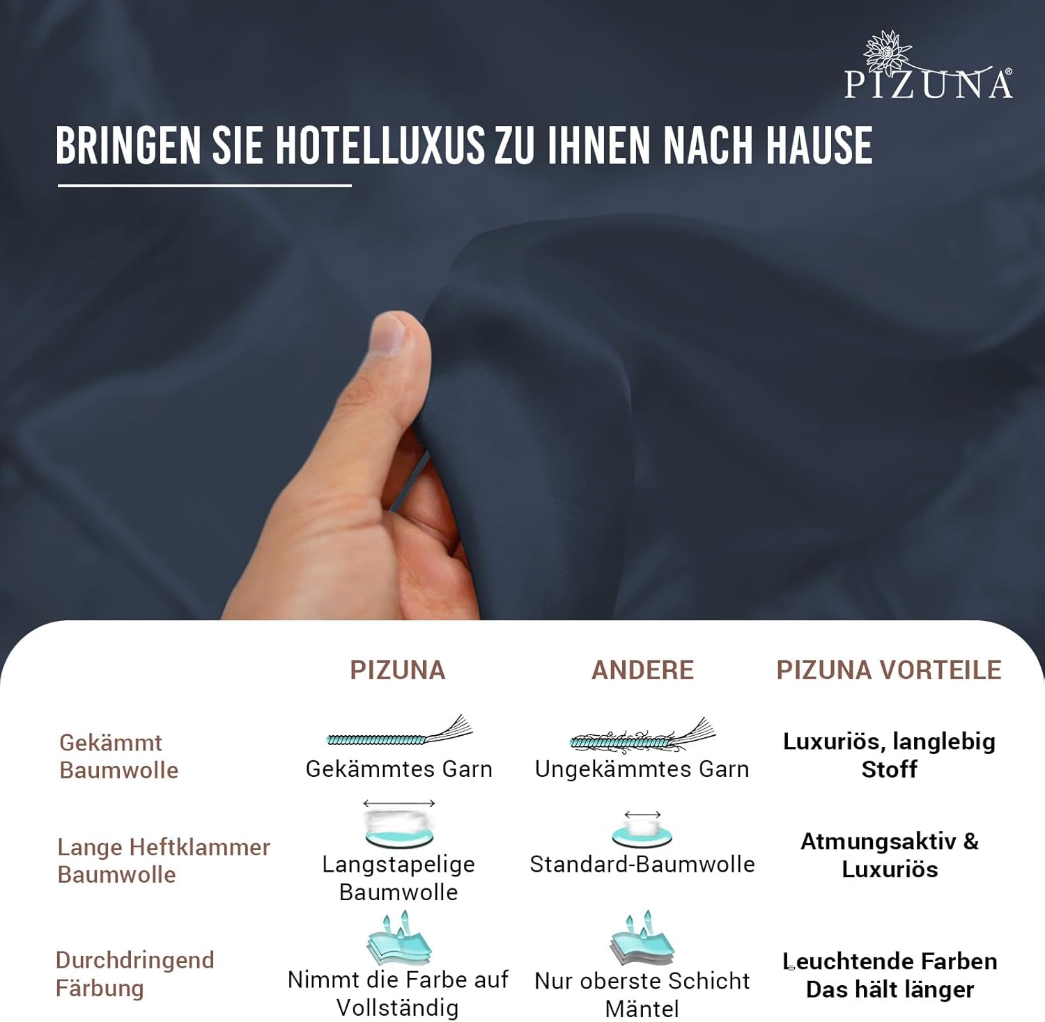 Pizuna 400 Fadenzahl aus Baumwolle Bettwäsche Dunkelblau, 100% Langstaple Baumwolle Bettbezug und Ki