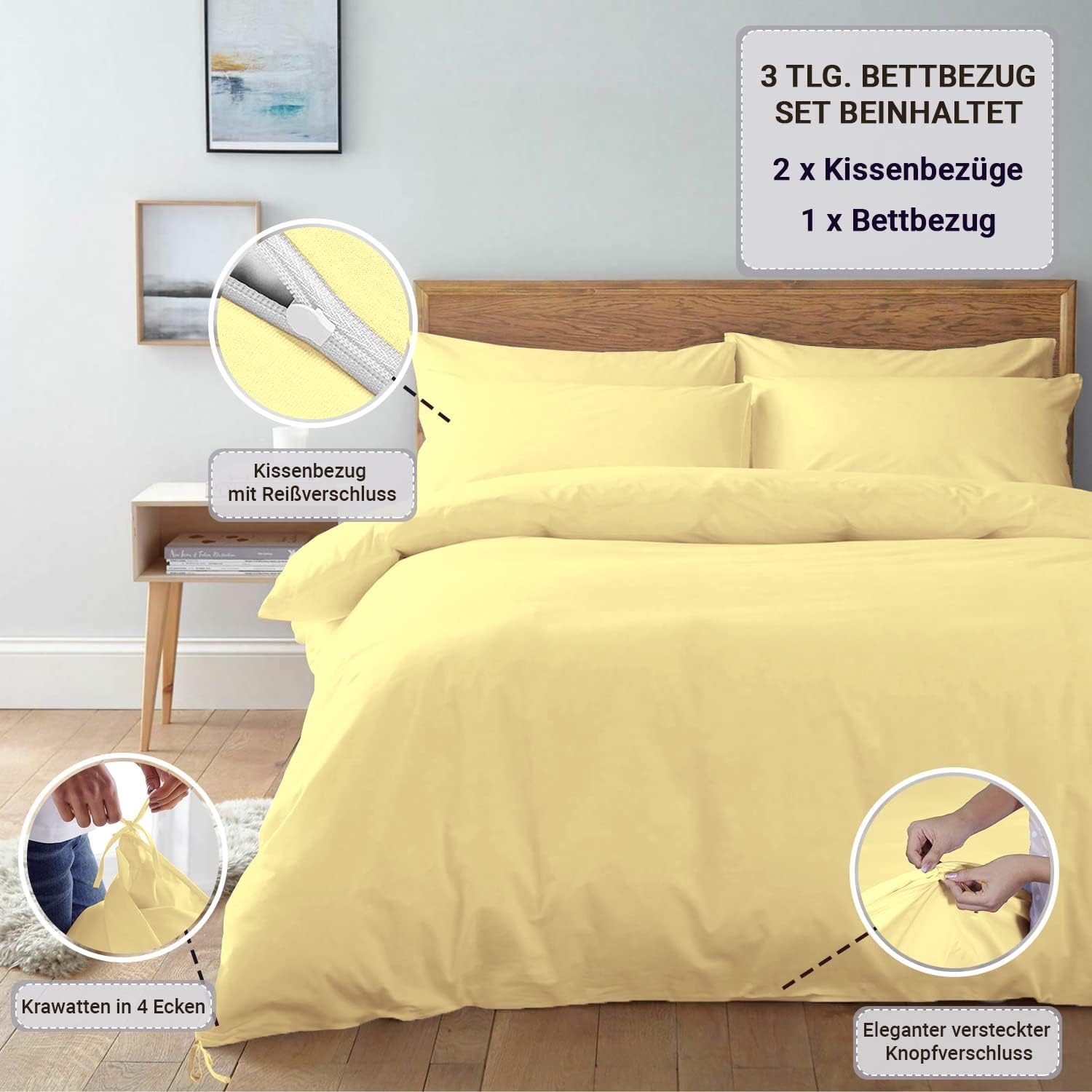 Variante: Mildes Gelb 3 tlg. Bettwäsche - 200x200 cm + 70x90 cm