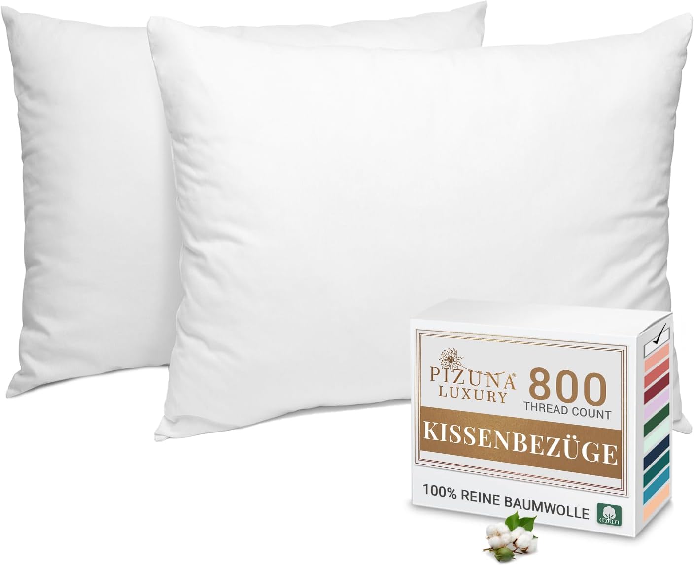 • 100% reine Eleganz aus merzerisierter gekämmter Baumwolle: Dank der feinen Garn-Technik von Pizuna verfügt dieser authentische 800 Fadenzahl Kissenbezug über ein Satingewebe mit der Webart „4 hoch, 1 runter“ , das seine Robustheit erhöht. Reine