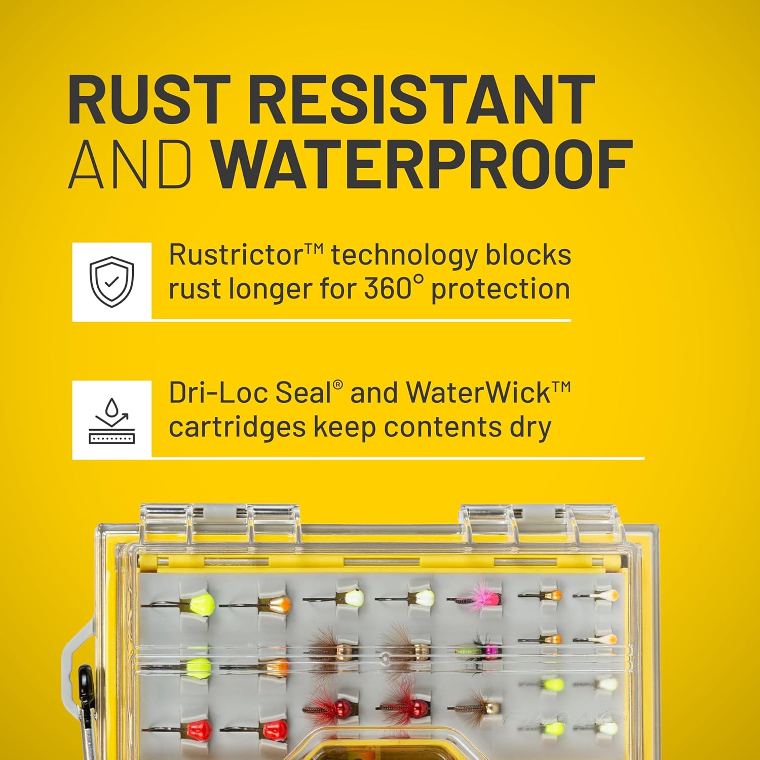 - Zuverlässig und wasserdicht: Dri-Loc O-Ring wasserdichte Dichtung hält die Wasserdichtigkeit im geschlossenen Zustand; WaterWick-Trennwand mit einer feuchtigkeitsableitenden Packung schützt nasse und trockene Jigs gleichermassen.