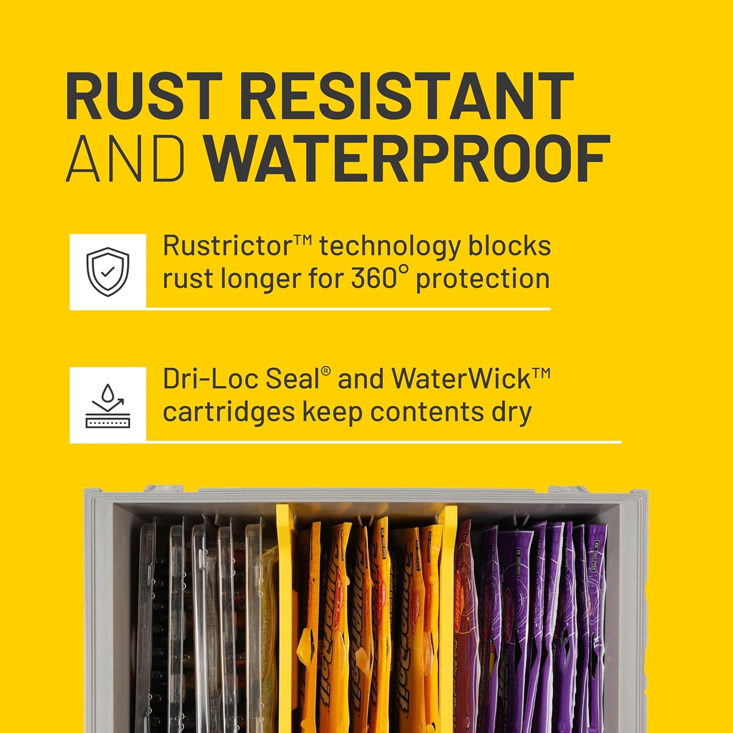- Funktionales Tackle-Box-Set mit Restrictor Rostschutzmittel im Boden, wasserdichte Dri-Lock Dichtung, einen klaren Deckel zum schnellen Identifizieren des Inhalts, übergrosse Verriegelung zum einfachen Öffnen mit einer Hand, super strapazierfähiger