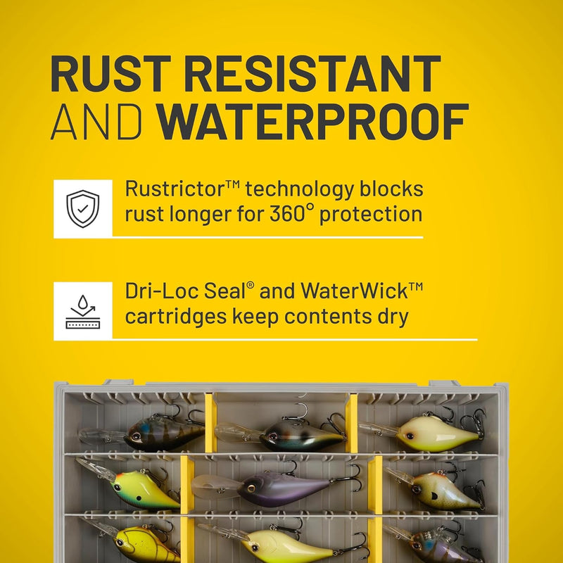 - Funktionales Tackle-Set mit Restrictor Rostschutzmittel im Boden, wasserdichte Dri-Loc Dichtung, transparenter Deckel zum schnellen Identifizieren des Inhalts, übergrosse Verriegelung zum einfachen Öffnen mit einer Hand, super strapazierfähiger