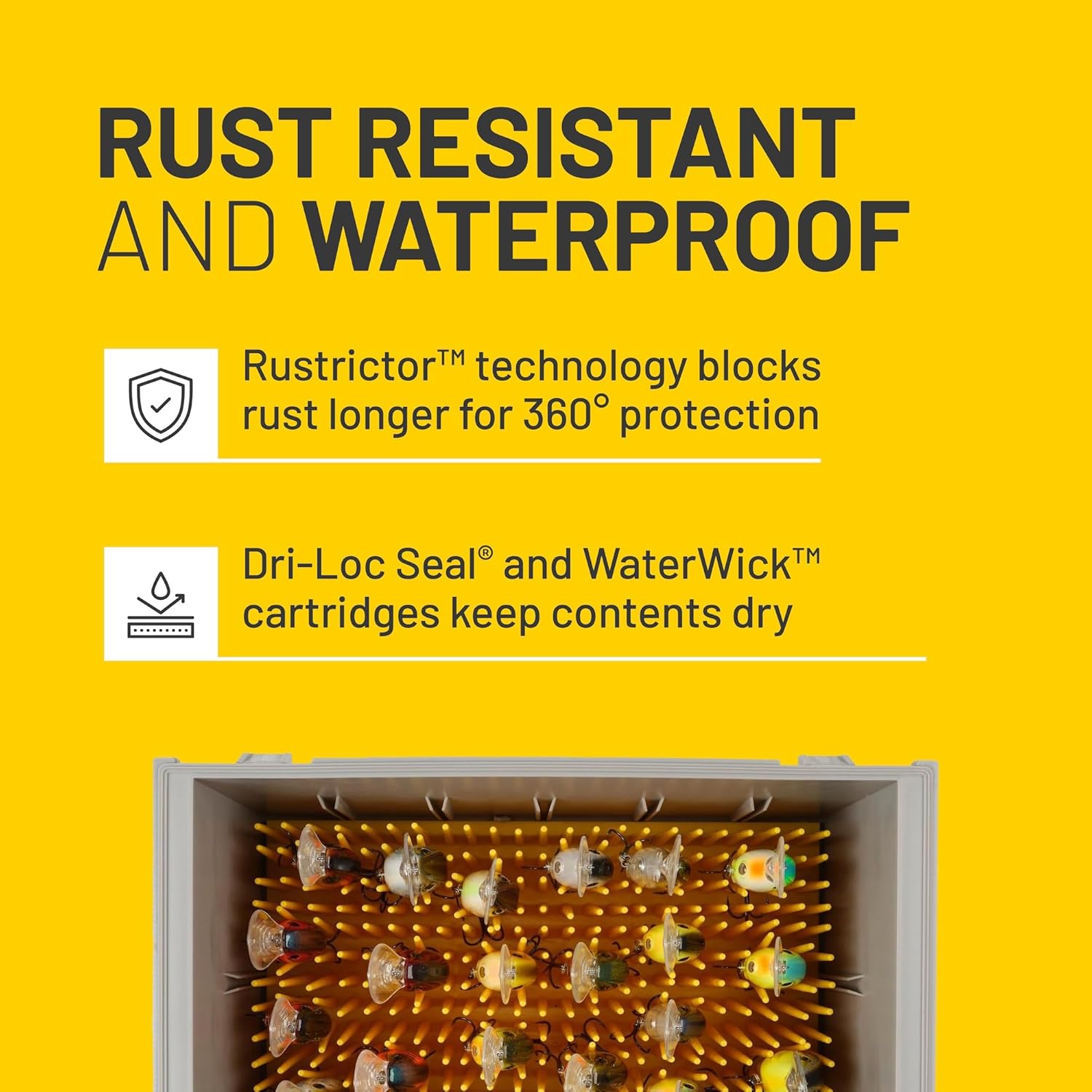 - Funktionales Tackle-Box-Set enthält Rustrictor-Rostschutz im Boden, Dri-Loc wasserdichte Dichtung, einen transparenten Deckel zur schnellen Identifizierung des Inhalts, übergrosse Verriegelung zum einfachen Öffnen mit einer Hand, super haltbarer