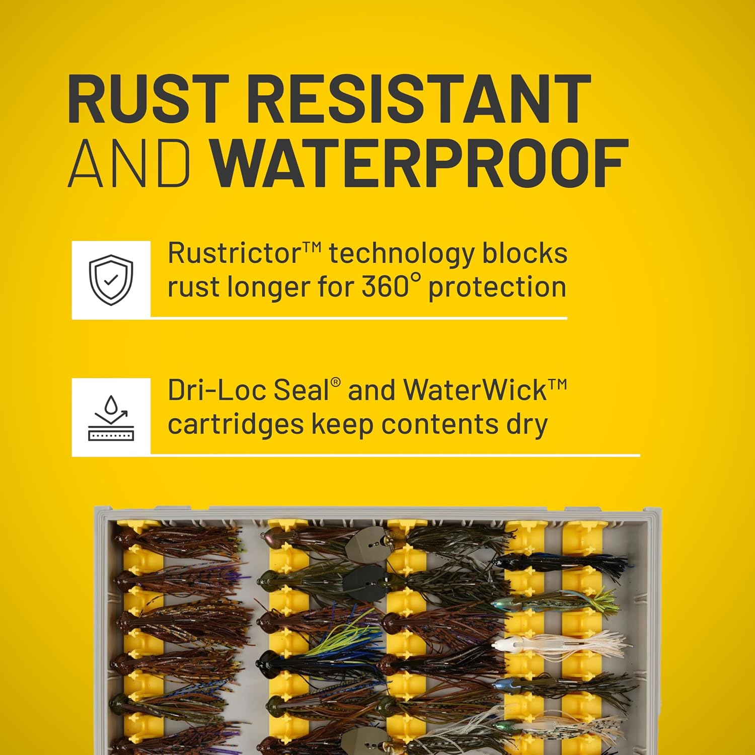 • Einfacher Zugang und Schutz: Nie wieder aufgeschlagene Köder beim Transport zum und vom Wasser. Das wasserabsorbierende Trockenmittelmaterial schützt Ihre Ausrüstung.