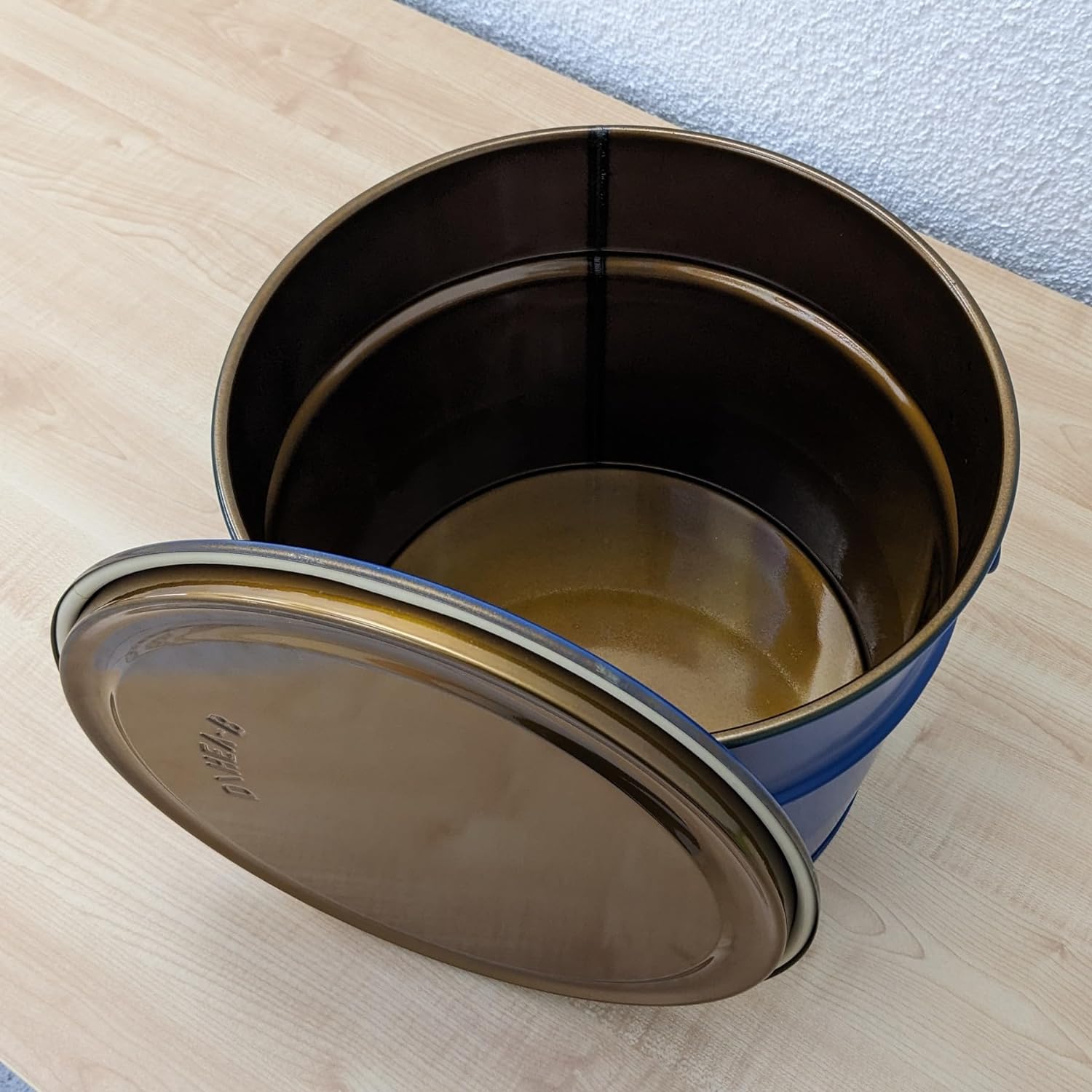 - OBERFLÄCHE Farbe aussen: Blau | Farbe innen: Gold | Deckel und Spannring: verzinkt