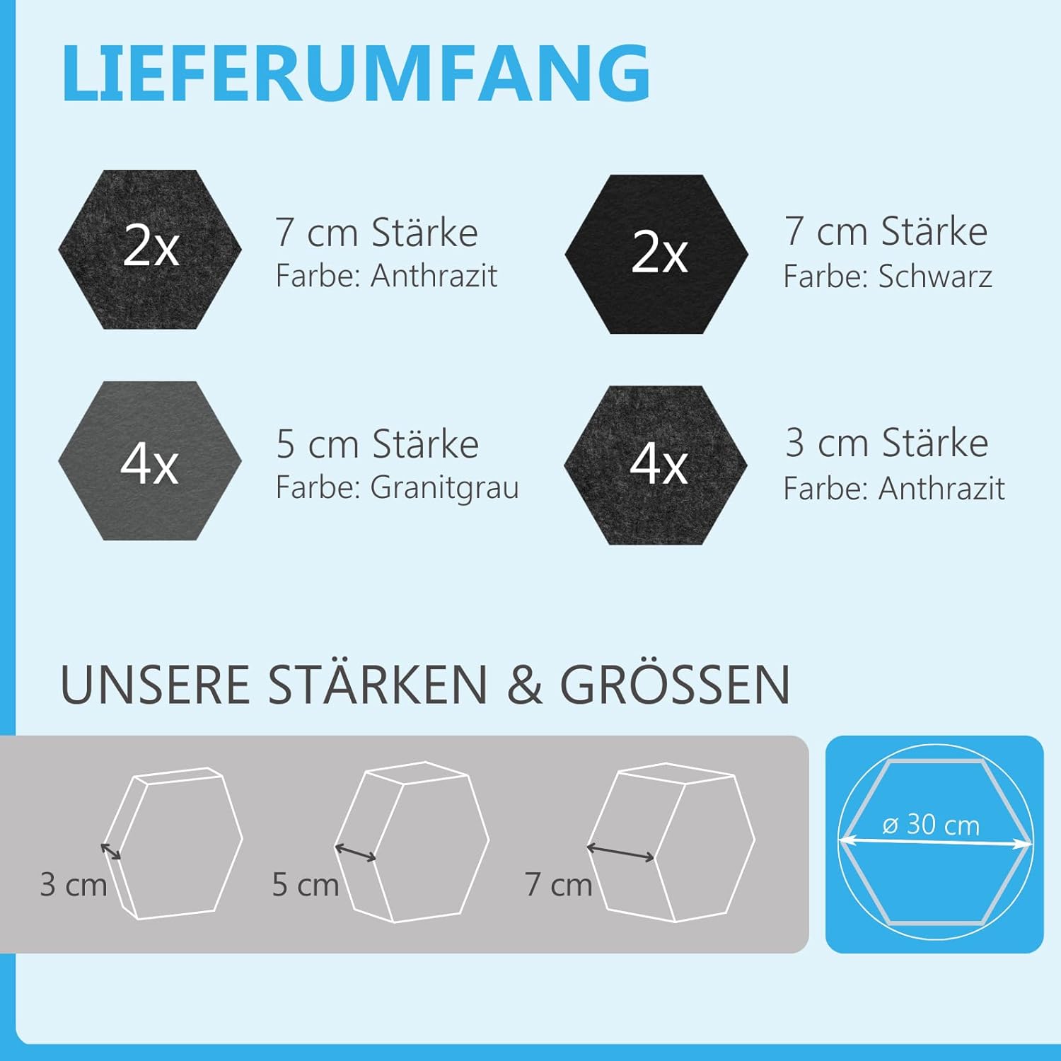 platino24 Schallabsorber 3D-Set aus Basotect G+ < 12 Elemente Ø30cm Wabe > Qualitäts Akustik Element