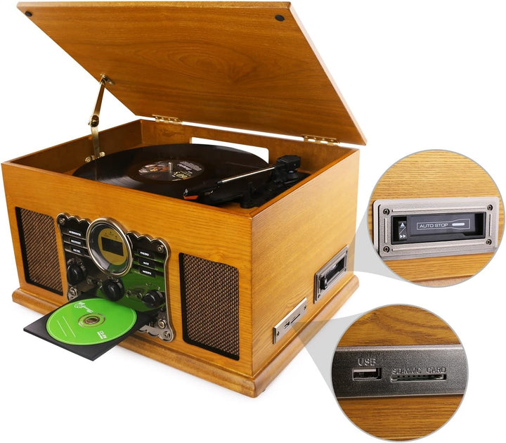 - ♬Multifunktions-Plattenspieler: Dieser Plattenspieler im Retro-Design ist mehr als nur ein Plattenspieler. Unser Plattenspieler verfügt über eine Vielzahl von Funktionen, darunter einen CD-Player, DAB / FM Radio, Cassettendeck, Aux-Eingang, Bluetooth