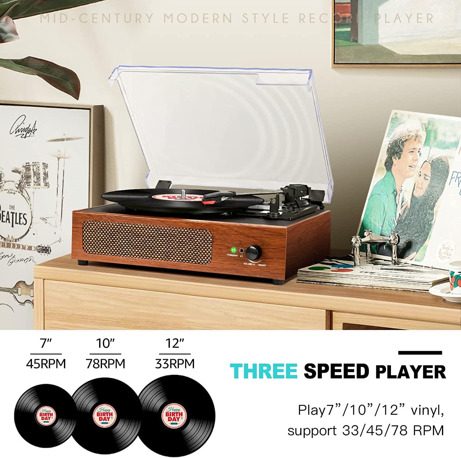 • ✅【3 Geschwindigkeiten und 3 Grössen von Schallplatten】Unterstützt die Einstellung von drei Geschwindigkeiten beim Hören (33-1/3, 45 und 78 U/min) und beim Abspielen von Schallplatten in drei Grössen (7", 10" und 12"), sodass Sie Ihre gesamte