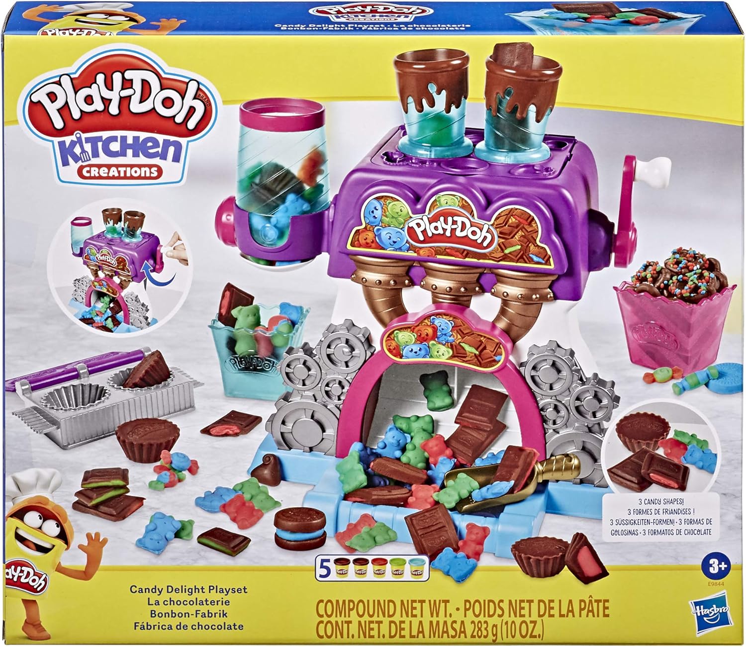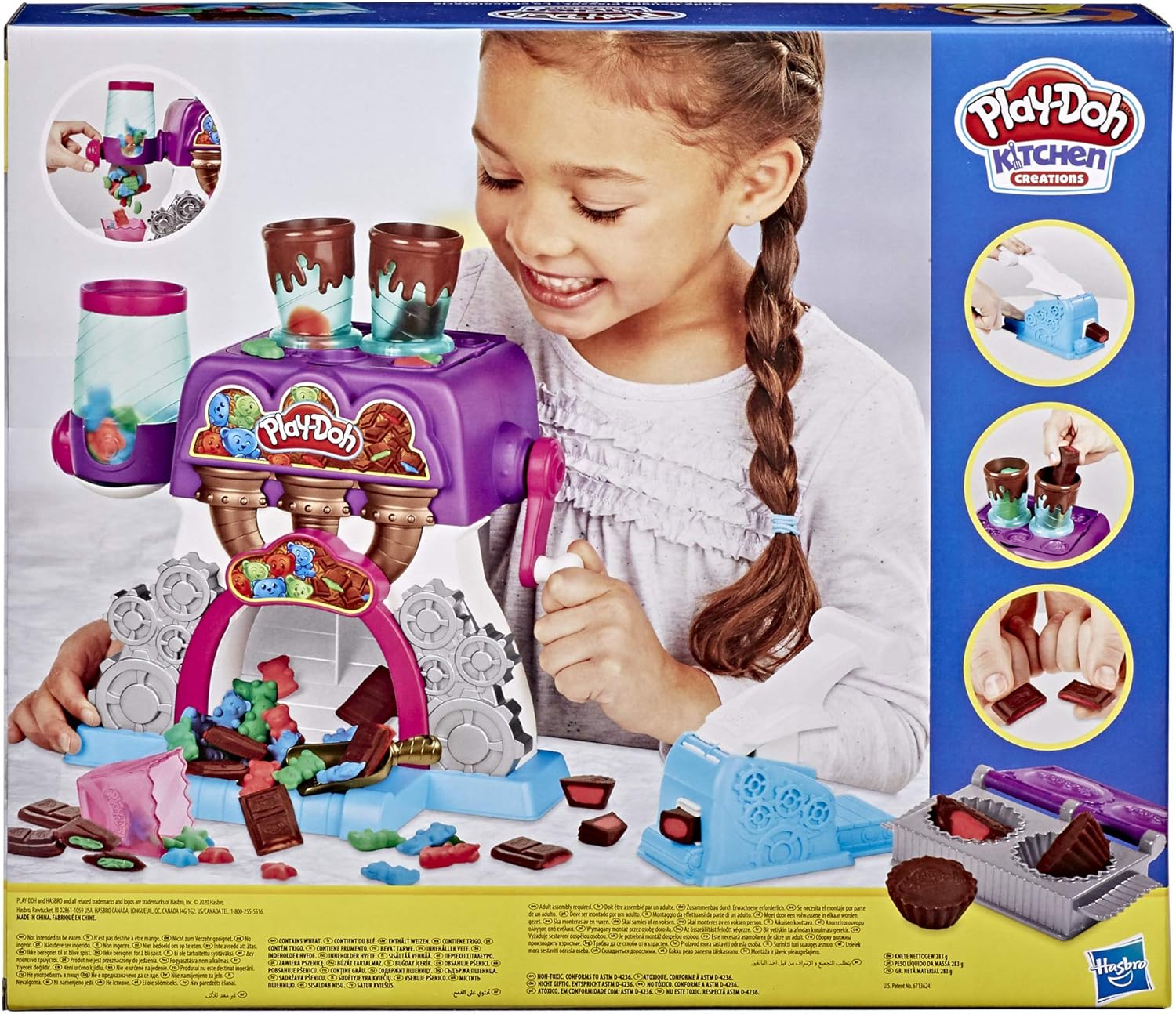 - PLAY-DOH-GUMMIBÄRCHEN, LUSTIGE PRALINEN, VERRÜCKTE SCHOKORIEGEL UND MEHR: Die Bonbon-Fabrik bietet eine grosse Auswahl! In der Bonbon-Maschine entstehen die Gummibärchen und Schokoriegel und die Förmchen zaubern süsse Pralinen hervor
