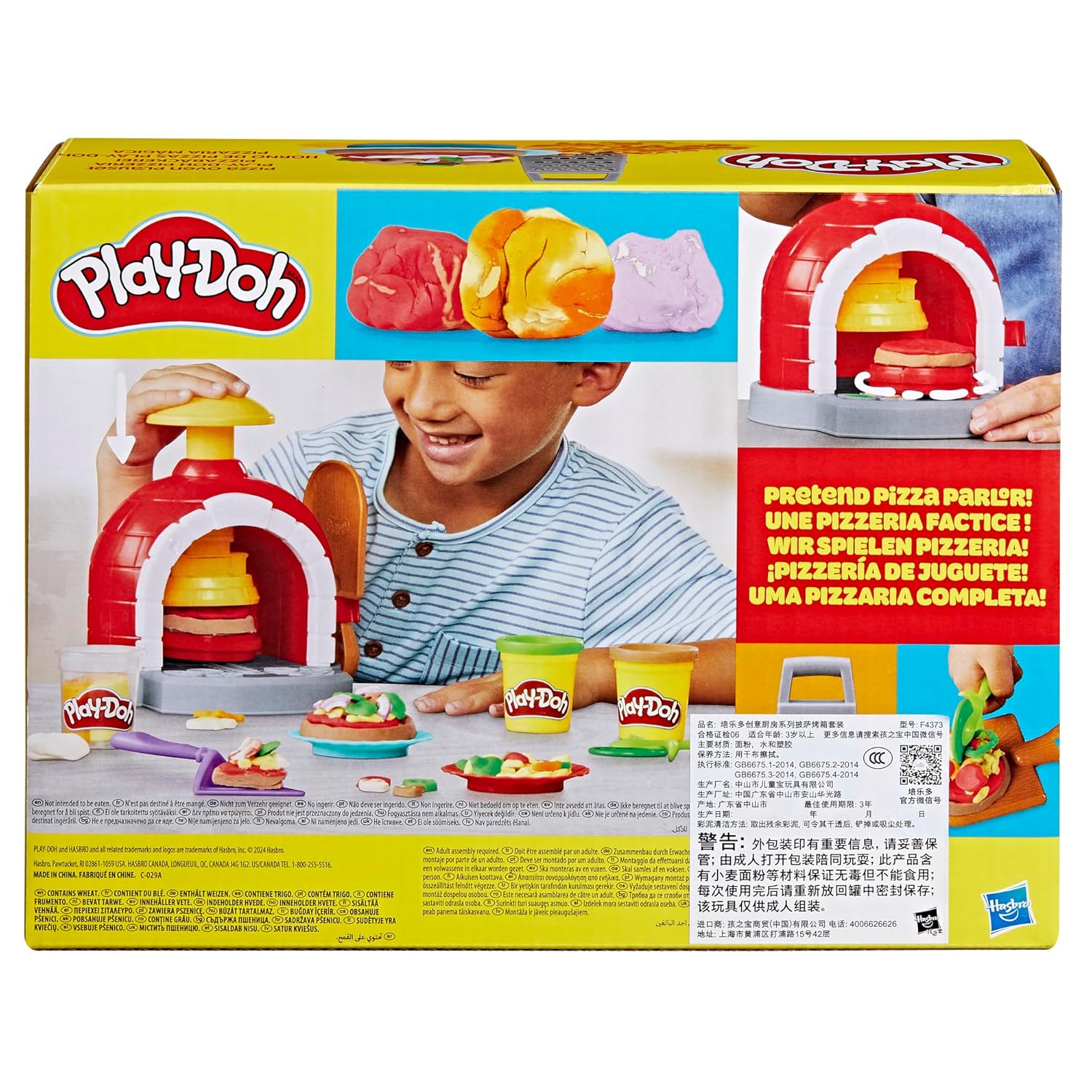 - EINE PIZZAKRUSTE FORMEN: Um zu starten, einfach etwas Play-Doh auf den Teller legen und dann den oberen Knopf drücken, um eine Pizza mit einer knusprigen Kruste zu formen und aus dem Ofen herausdrehen zu lassen