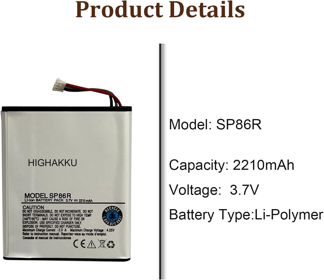 - 100% neue, hochqualitative, aktualisierte Batterie, verwendet Batteriezellen der Klasse A + mit UL-, Ce- und Rohs-Zertifizierung. Jede Batterie verfügt über einen unter strengen Qualitätskontrollstandards getesteten Akku und bietet Ihnen eine Ladung