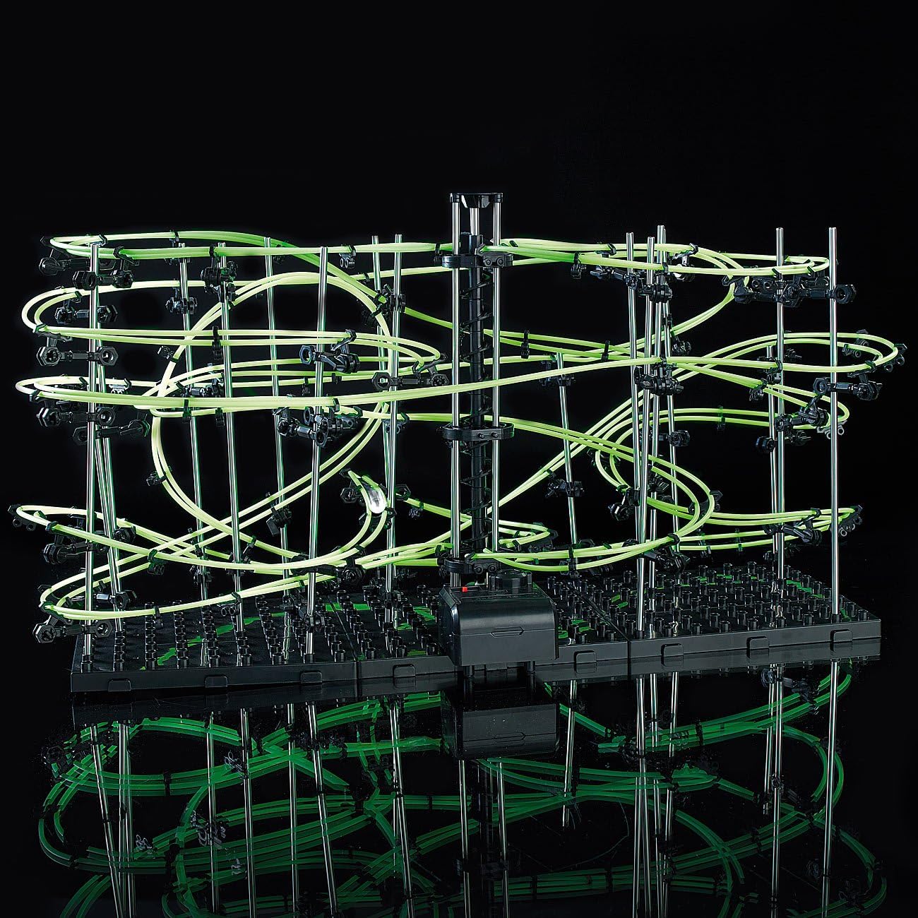 - Spannende und sehr anspruchsvolle Kugel-Achterbahn zum Selbstaufbau (benötigt etwas Zeit und Geduld) • Spezial-Set mit 13 Meter nachleuchtenden Schienen (26- Meter-Rolle) • Geeignet für jugendliche und erwachsene Tüftelfans ab 15 Jahren
