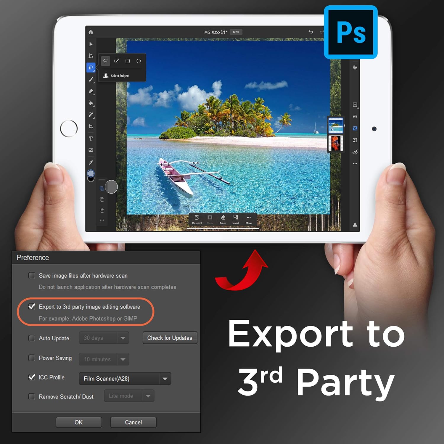• Unterstützt den Export in Bildbearbeitungssoftware von Drittanbietern. Zum Beispiel: Adobe Photoshop oder GIMP.