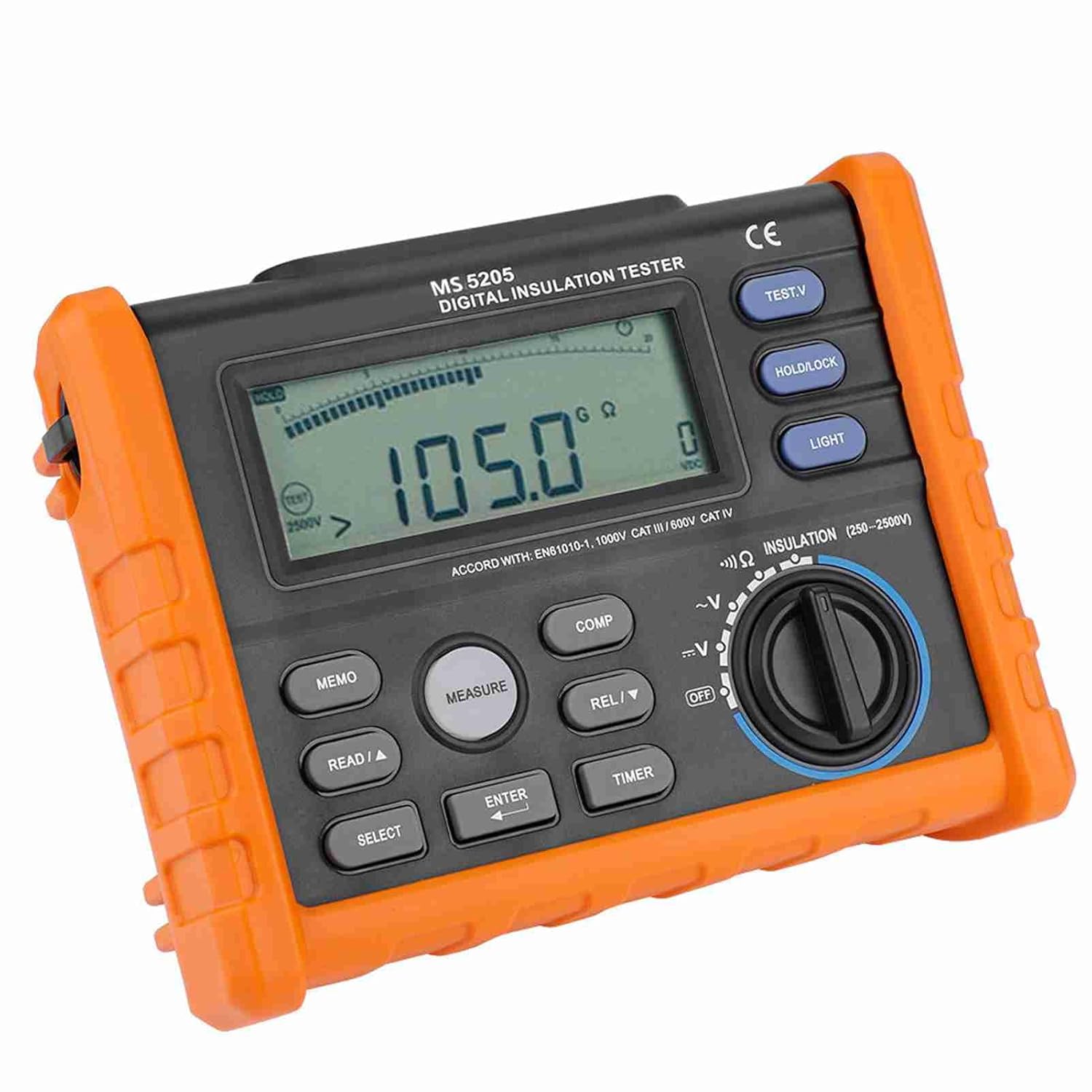- [Umfangreiches Widerstandsmessgerät] Dieses PM5205 Widerstandsmessgerät ist ein professionelles Instrument zur Prüfung des Isolationswiderstands mit 250V-2500V Spannung und kann zur Messung von AC/DC und Durchgangsprüfung verwendet werden.