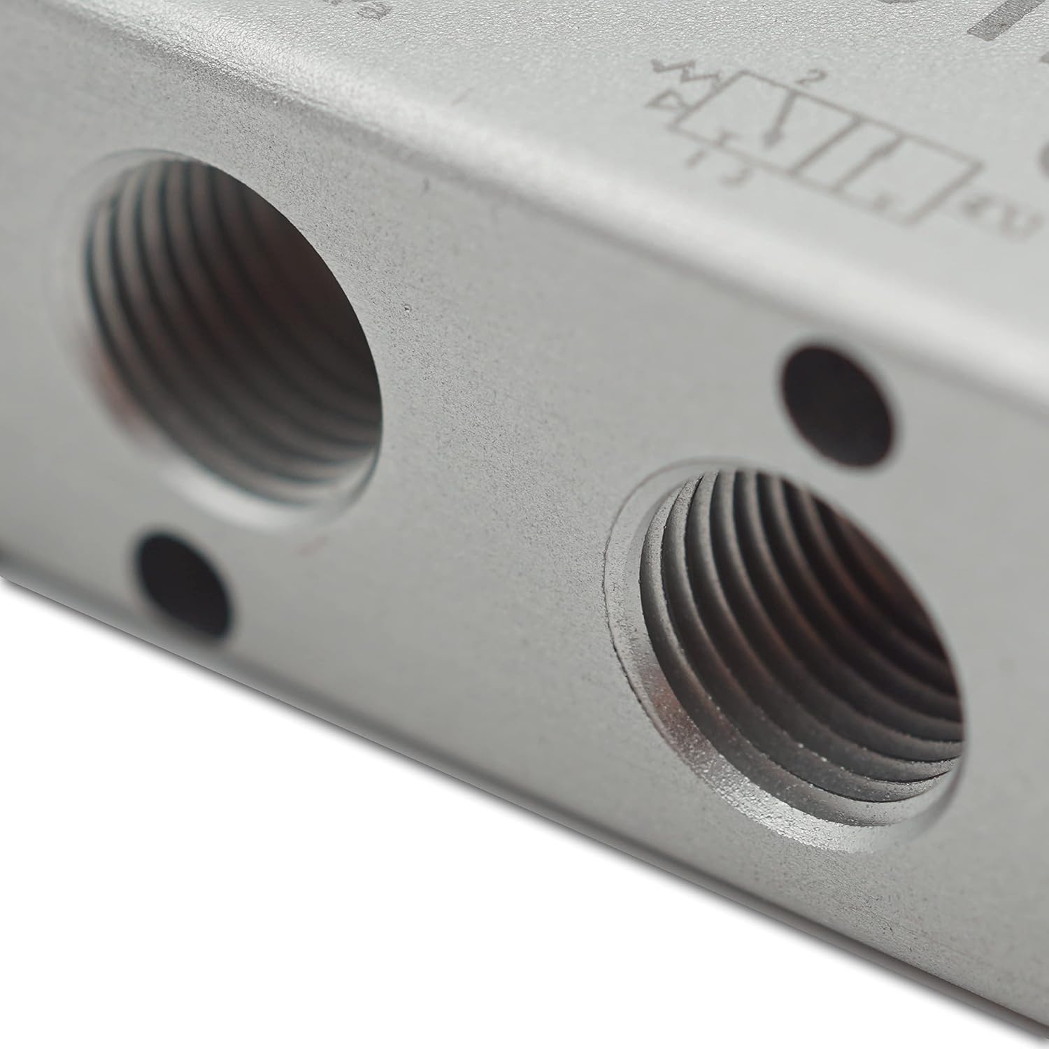- โ T๐๐๐ก๐ง๐ข๐ฌ๐๐ก๐ ๐๐๐ญ๐๐ง - Das Pneumatik-Wegeventil ist an allen Anschlรผssen mit 1/8" Gewinden versehen. Grosse Durchflussrate von 500 L/min bei geรถlter und ungeรถlter, gefilterter Druckluft. Gewinde der