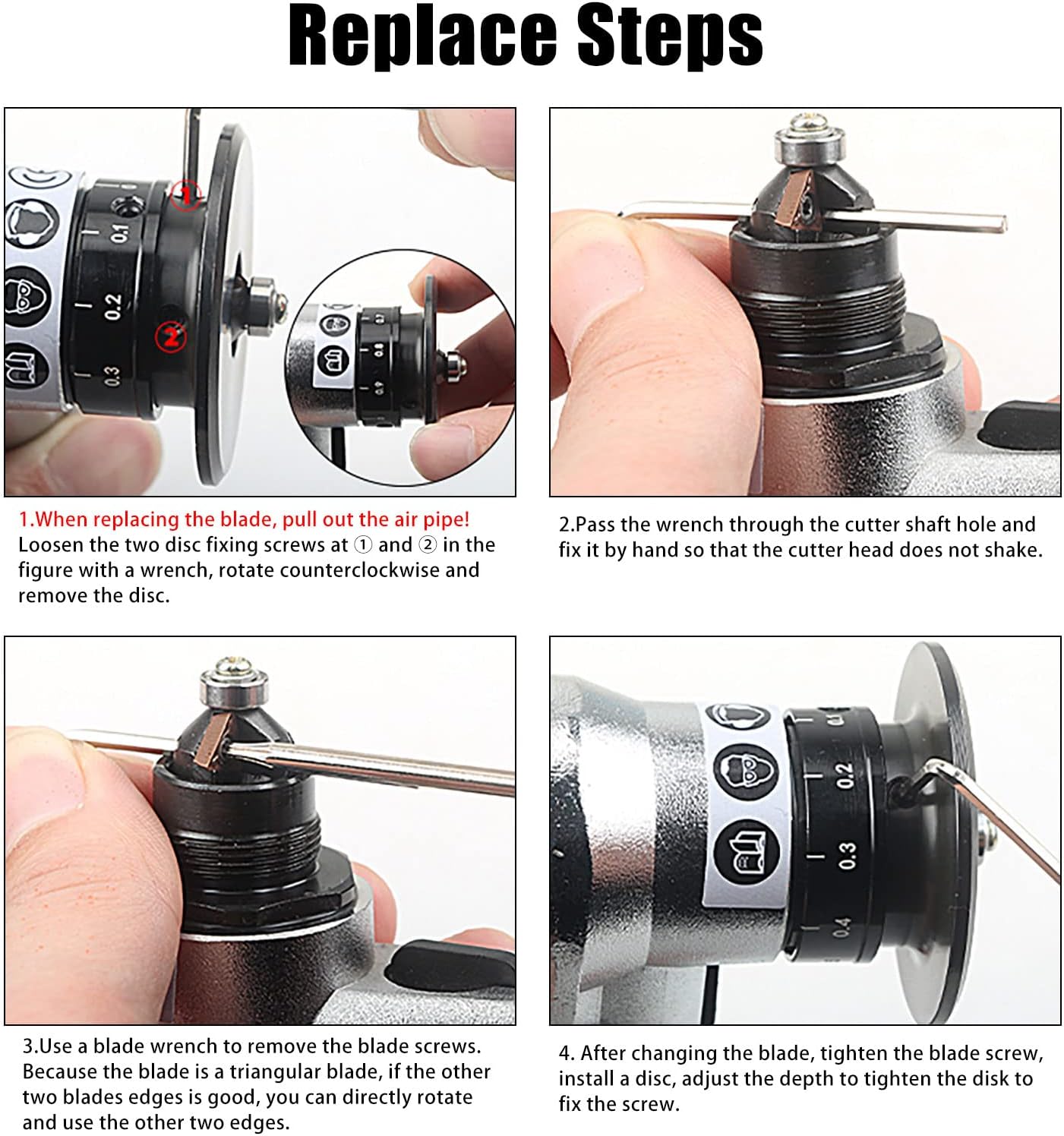 - Einzigartiges Design: Doppelkopf-Design, kann die Tiefe von selbst einstellen, klemmt automatisch die Befestigungsschraube ein, fällt nicht leicht ab. 1/4 Zoll mit Metallfilter, um zu verhindern, dass Grate und Fremdkörper in den Lufteinlass gelangen und die Maschine beschädigen.