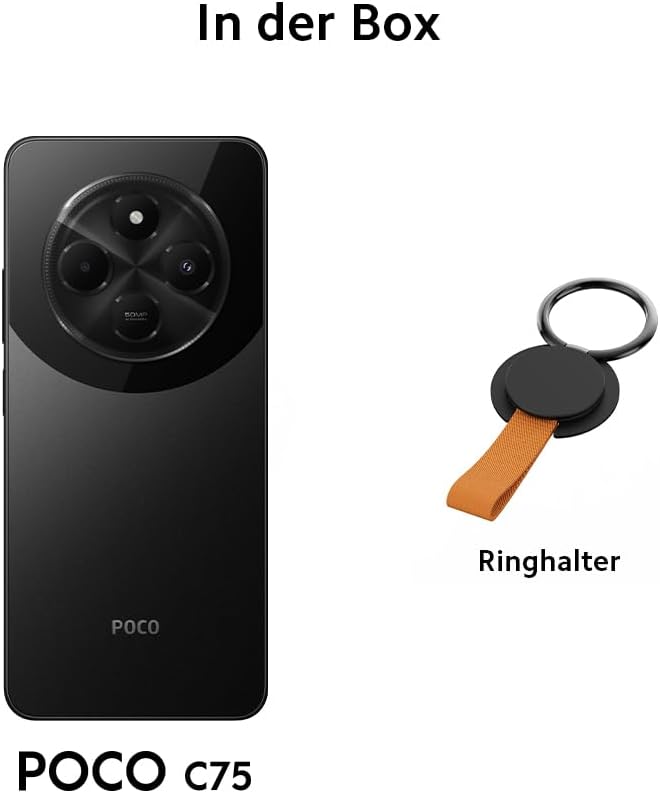 - Lieferumfang: 1 x POCO C75 Gerät (HyperOS), USB Typ-C-Kabel, Kurzanleitung, SIM-Auswurftool, Garantiekarte und Sicherheitshinweise