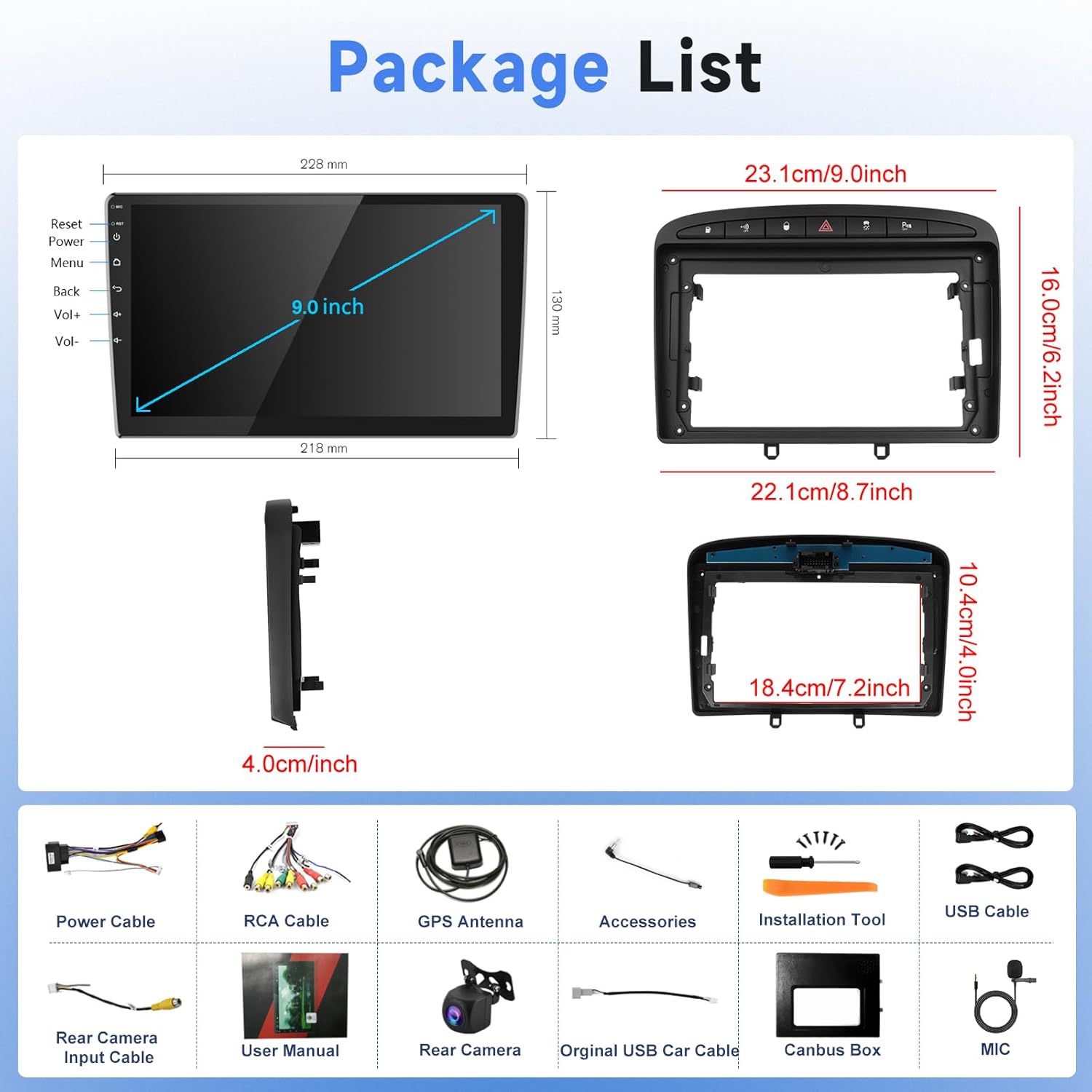 - 【Autoradio mit grossem Bildschirm, speziell für Peogeot 308 408 2010-2013】⚠HINWEIS: Passen Sie NUR auf die gleiche Mittelkonsolenform wie auf dem Bild. Abmessungen: 231 (Breite oben) x 221 (Breite unten) x 160 (Höhe) mm. 9-Zoll-Touchscreen mit