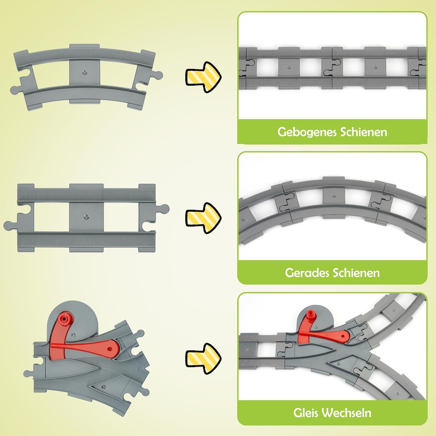 - 🔥【Fördert Kreativität und Fähigkeiten】: Mit unserem Schienenset können Kinder ihre eigene Eisenbahnwelt erschaffen und dabei ihre Kreativität, Feinmotorik und kognitive Fähigkeiten trainieren. Es bietet unendliche Möglichkeiten für