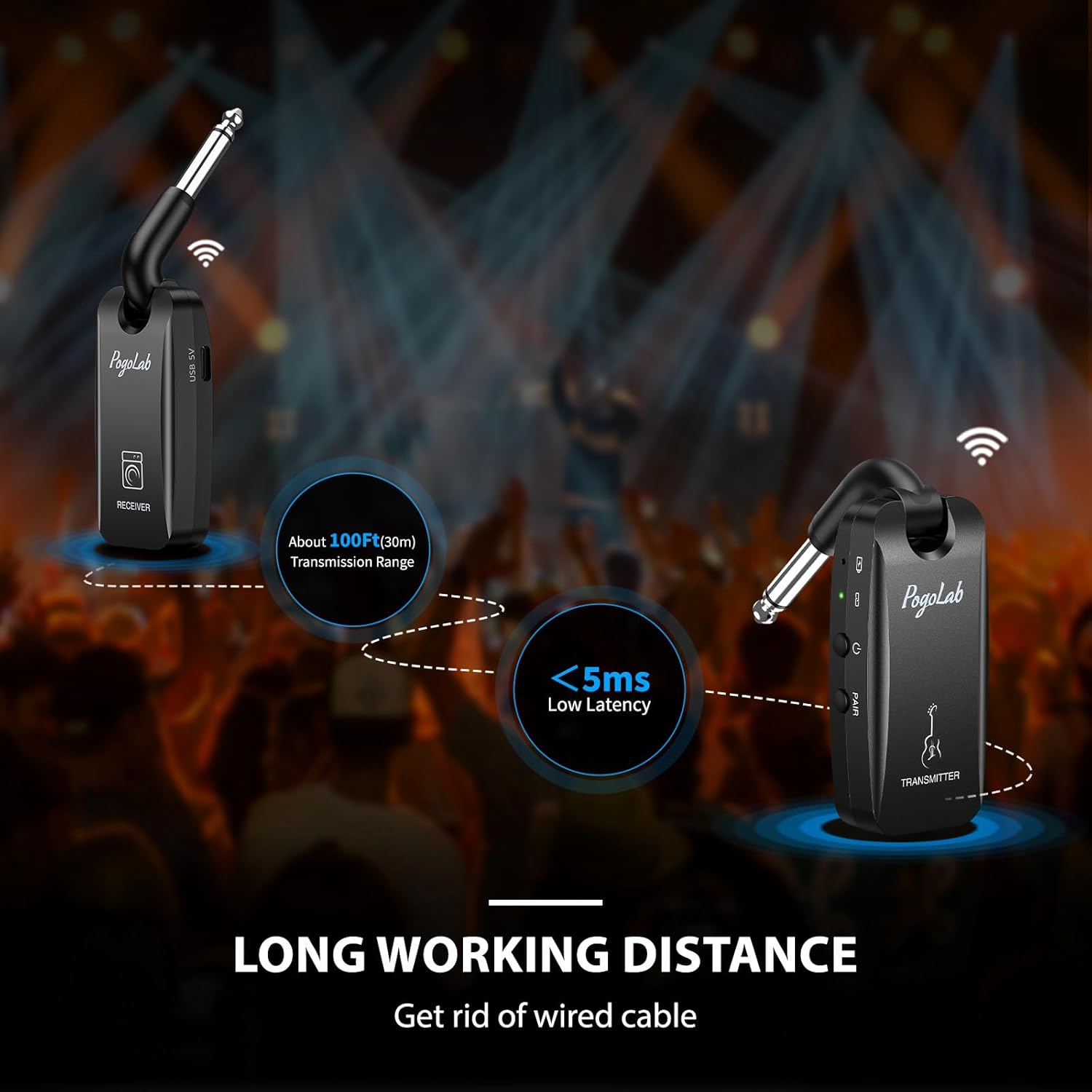 - 🎸【100 Fuss stabile Übertragung】: Drahtlose POGOLAB-Gitarrensender und -empfänger eine stabile effektive Reichweite von bis zu 100 Fuss in offenen Bereichen ab. Verfügbar für grosse Auftritte, Konzerte, lässt das Signal nicht fallen.