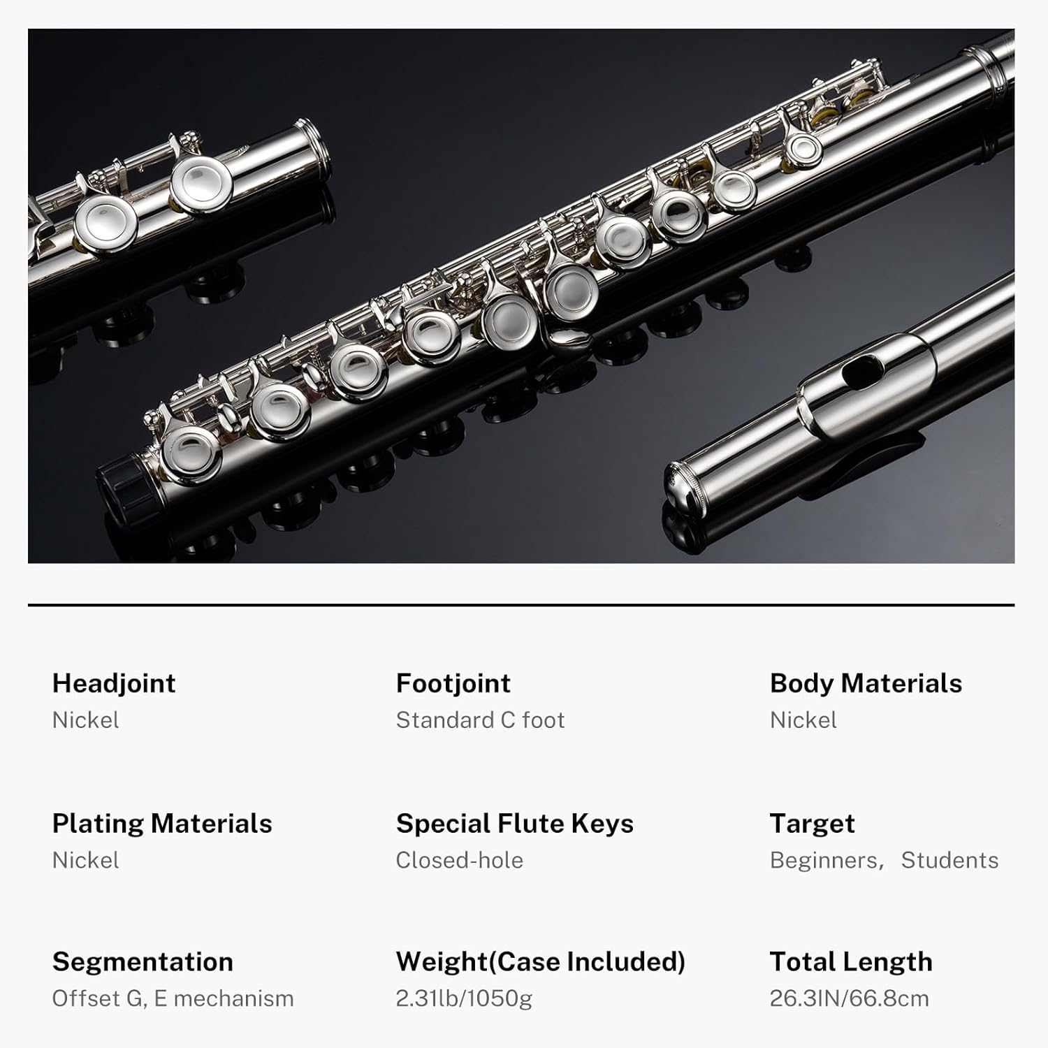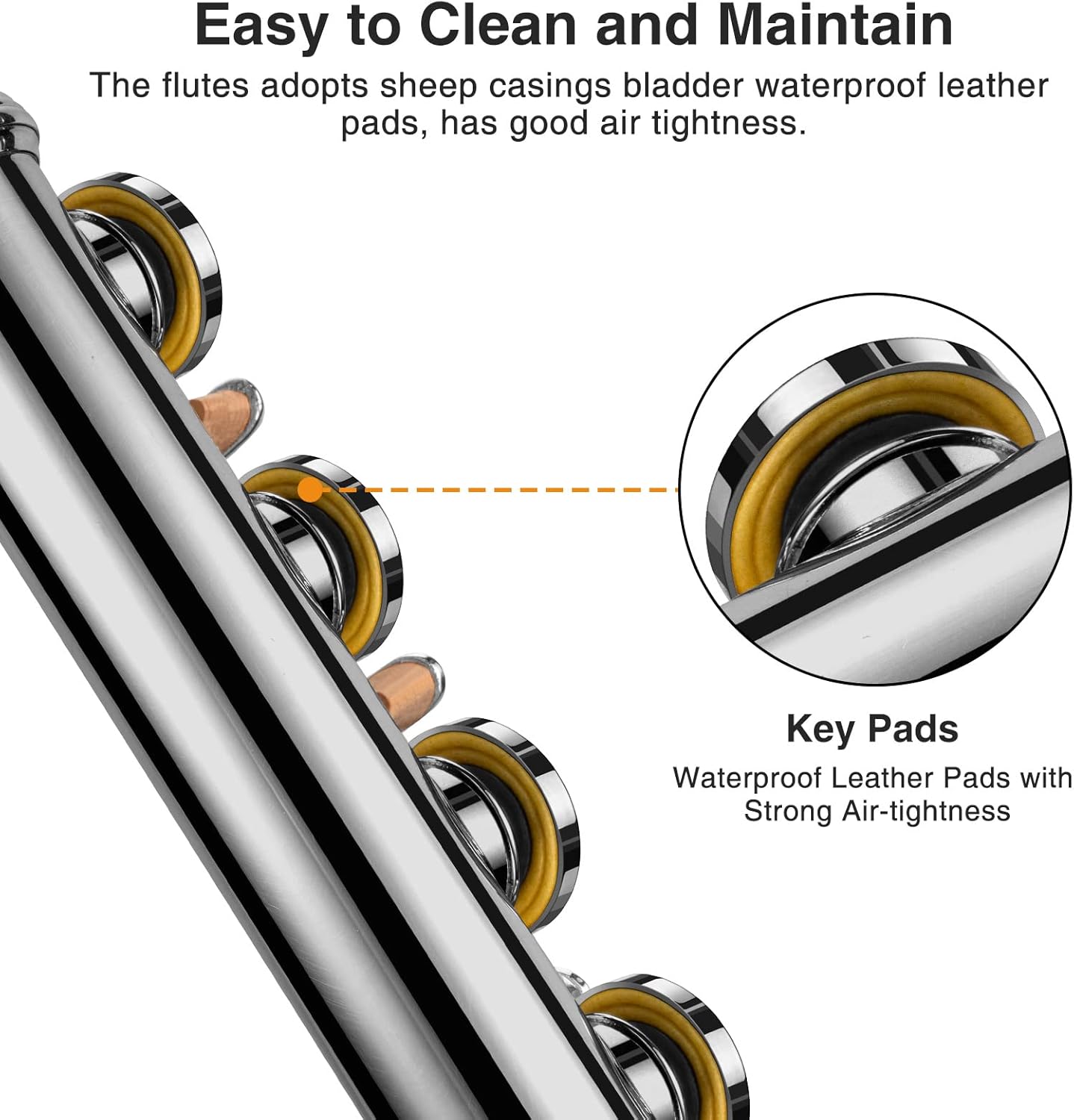 - 【Exquisite Verarbeitung】 Die integrierte Tastenplateau-Flöte sorgt für beispiellose Tonhöhenstabilität und ein angenehmes Anschlagsgefühl, minimiert Luftlecks und verbessert die Klangqualität. Der Kupfernickel-Körper ist auf Langlebigkeit