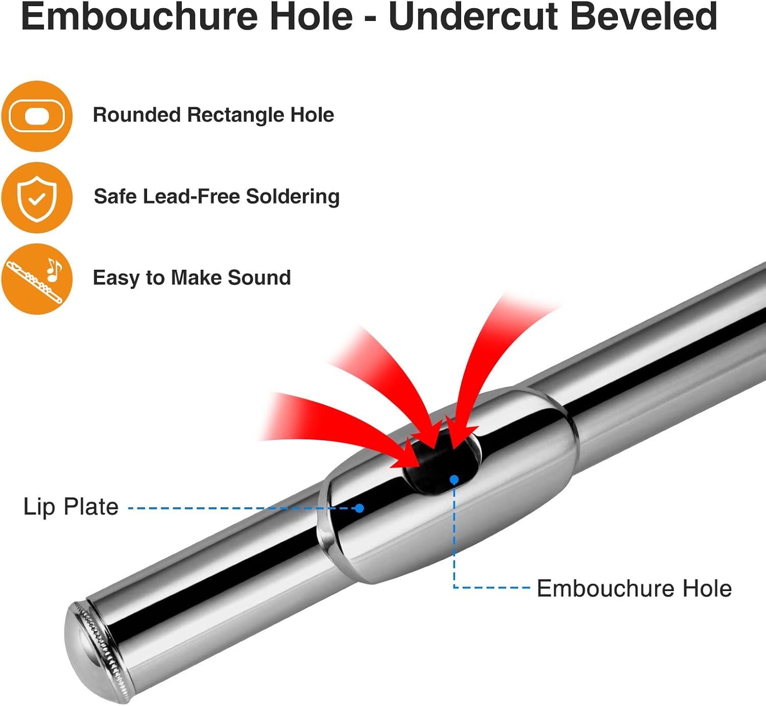 - 【Wundervoller Klang】 Das hinterschnittene, abgeschrägte Ansatzlochdesign erleichtert das Blasen oder erzeugt einen klaren Klang. Der rechteckige Ansatz verstärkt den Ton im unteren Register der Flöte, wodurch ein klarer, fokussierter und weicher