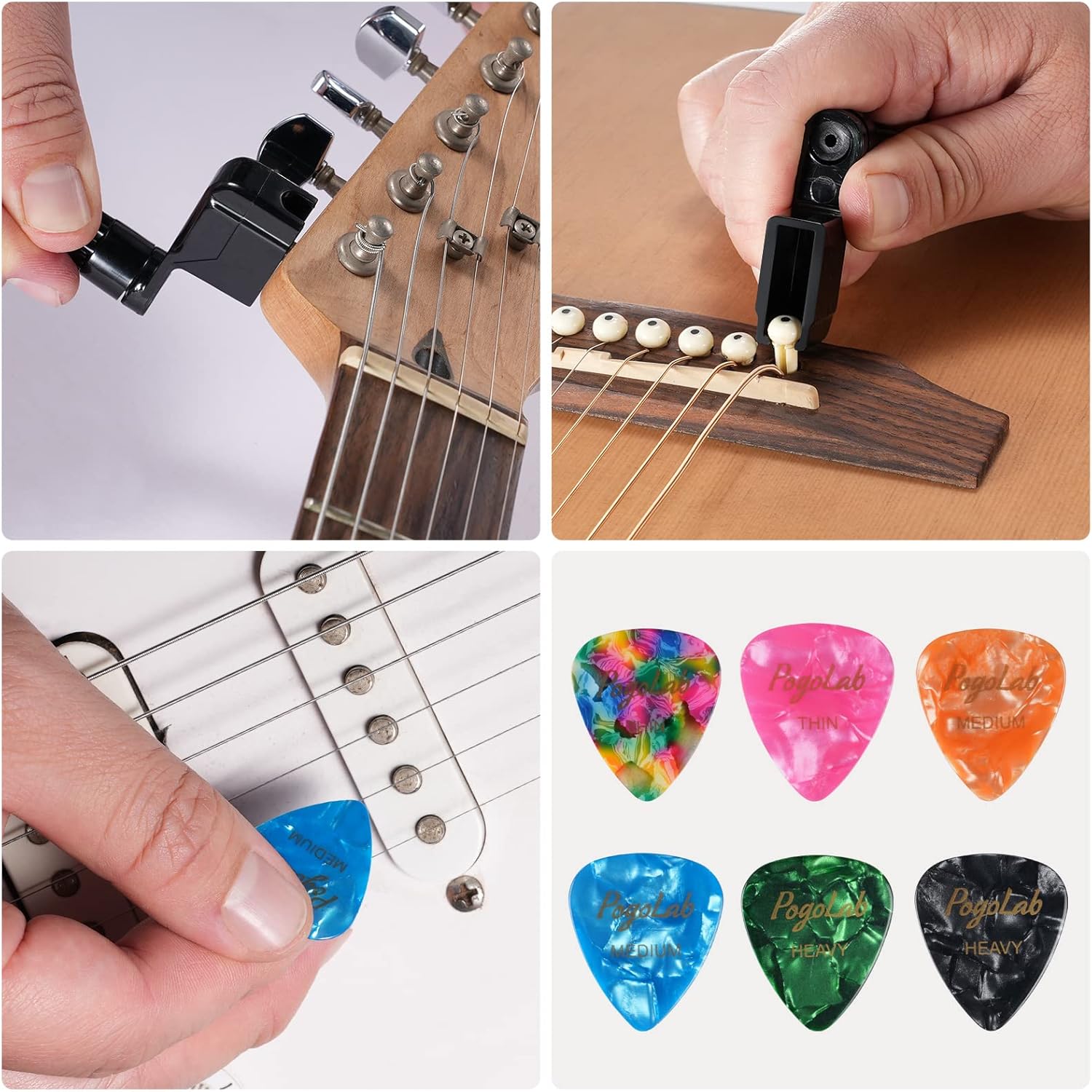 - ๐ธ๐๐๐ค๐๐ญ ๐๐ง๐ญ๐ก๐๐ฅ๐ญ๐๐ง: Dieses 31-Stk gitarren werkzeug set enthรคlt alles fรผr Saitenwechsel und -aufbau: 1 x Saitenschneider, 3 x Feilen, 3 x Inbusschlรผssel (4/5/6 mm), 1 x Stahlsaitenlineal, 1 x Saitenmechanik