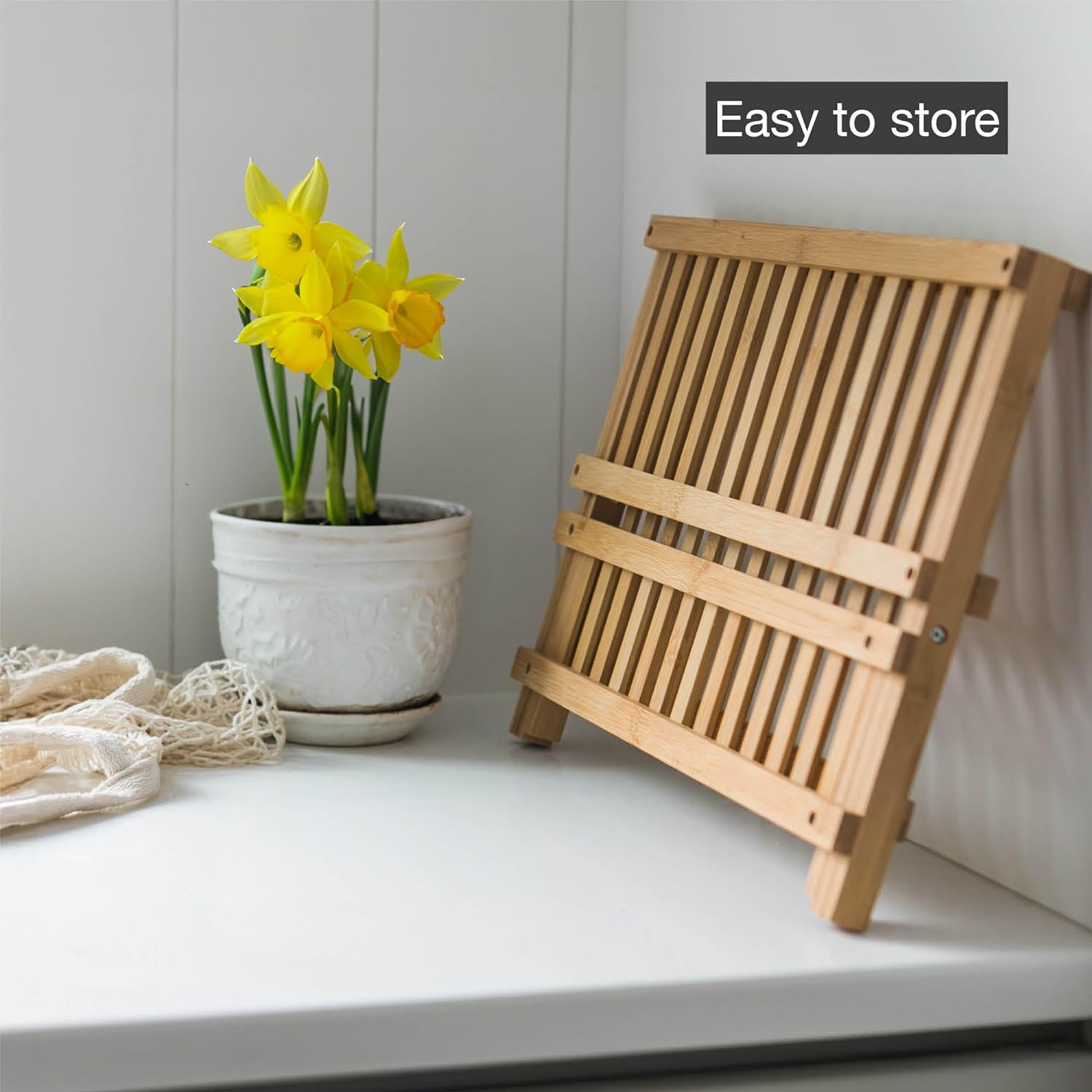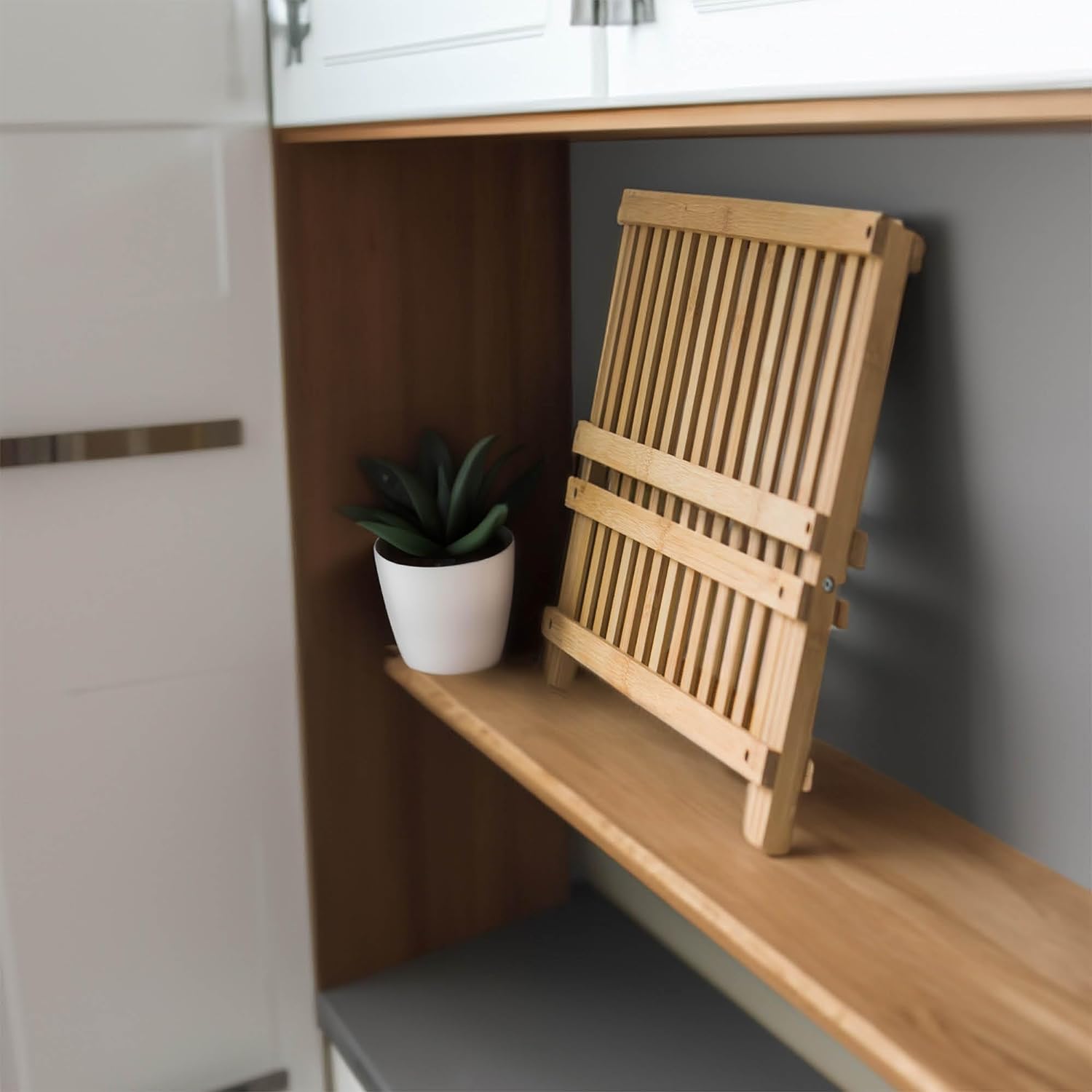 - ROBUSTES UND DEKORATIVES BAMBUS ABTROPFGESTELL. Das Abtropfgestell macht jedes Spülen zu einem angenehmen Job. Sie legen das Geschirr auf den Tropfträger und es trocknet natürlich in die Luft.