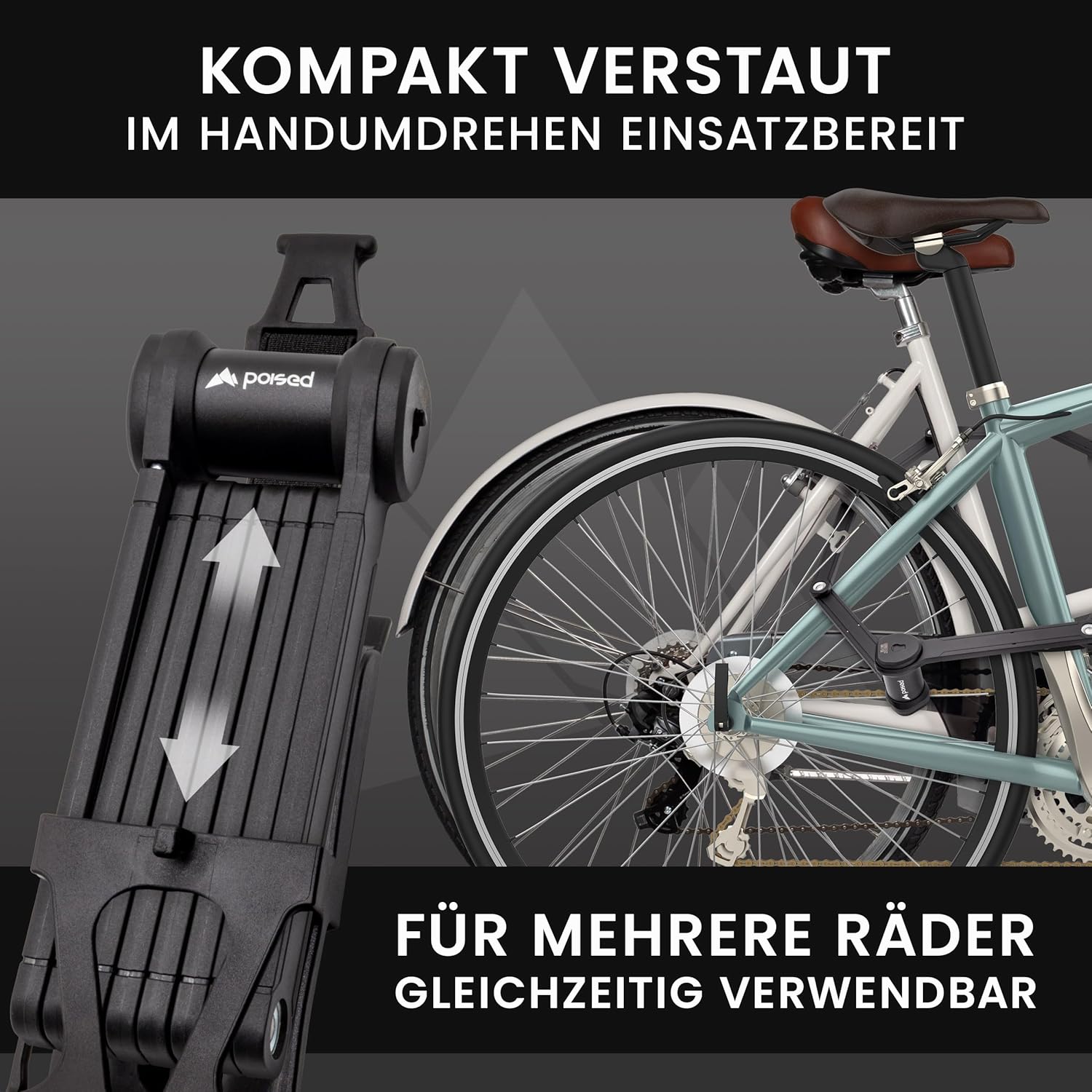 - ALLES DABEI – SOFORT EINSATZBEREITSie erhalten das komplette Sicherheitspaket: Das Faltschloss, zwei Sicherheitsschlüssel sowie eine flexible Rahmenhalterung mit verstellbaren Klettbändern für eine schnelle und werkzeugfreie Montage an fast jedem