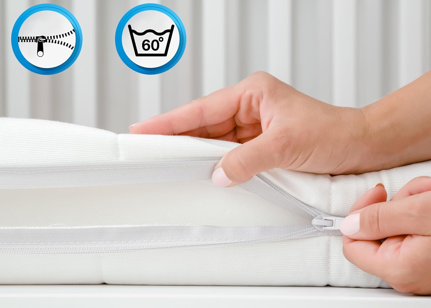 - EINFACHE VERWENDUNG: Die Matratzenauflage ist maschinenwaschbar bei maximal 60°C und mit milden Reinigungsmitteln. Es ist mit einem gesteppten abnehmbaren Bezug mit Reissverschluss ausgestattet. Es macht die noch einfacher sauber zu halten.