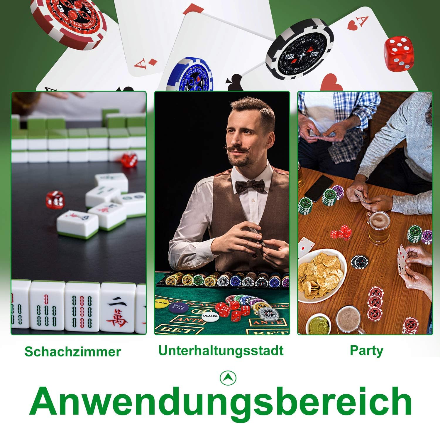 - Hochwertiger Pokerkoffer – Casino-Feeling zuhause: Erleben Sie echtes Casino-Feeling mit dem hochwertigen Pokerkoffer-Set! Jeder Chip wiegt 11,5 g und überzeugt durch angenehmes Gewicht und perfekte Balance – genau wie im professionellen Spielcasin