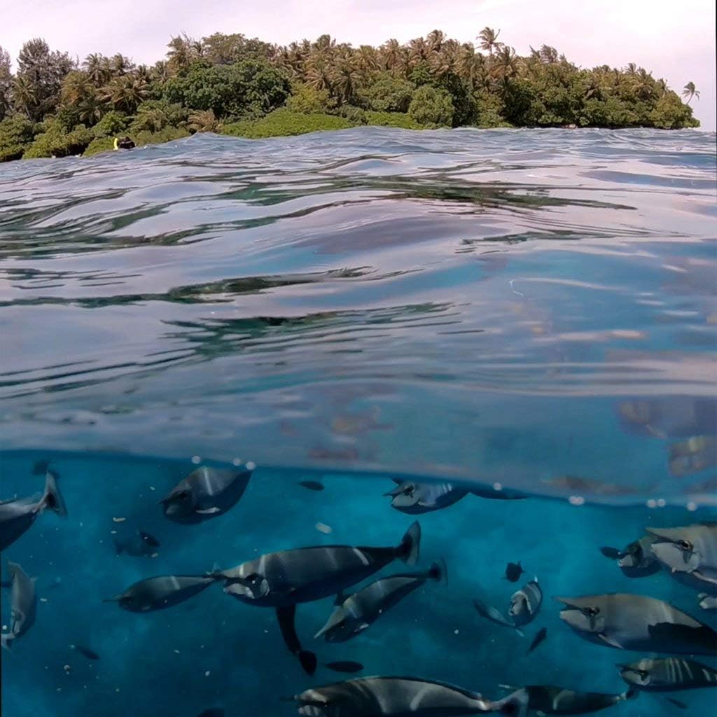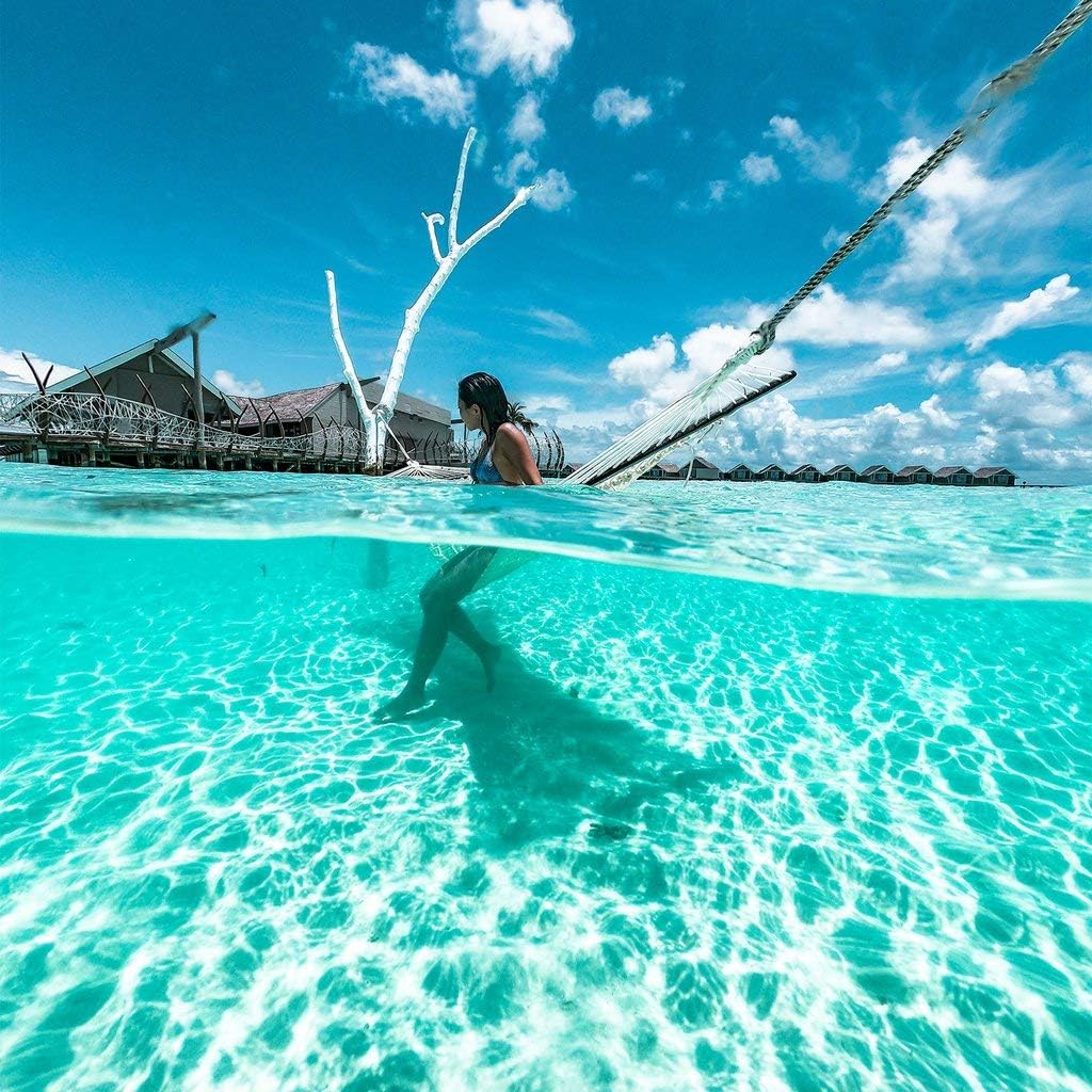 - Machen Sie schöne Aufnahmen von der Wasseroberfläche, halb über und halb unter dem Wasser