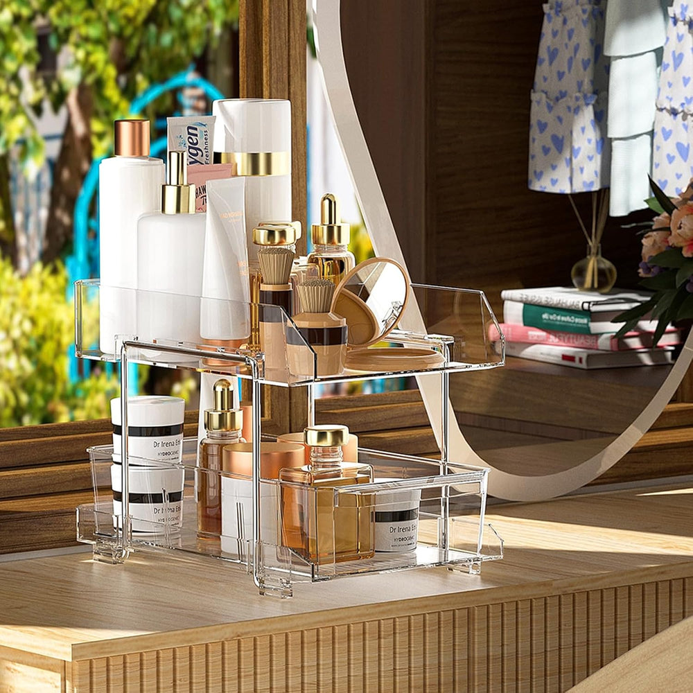 - ✔️【Klares Design】transparenten Designs können Sie auf einen Blick erkennen, was sich in der küche organizer regal befindet, Machen Sie es sich einfach, das zu finden, was Sie brauchen. Badezimmer Organizer mit 2 herausnehmbaren Trennwänden.