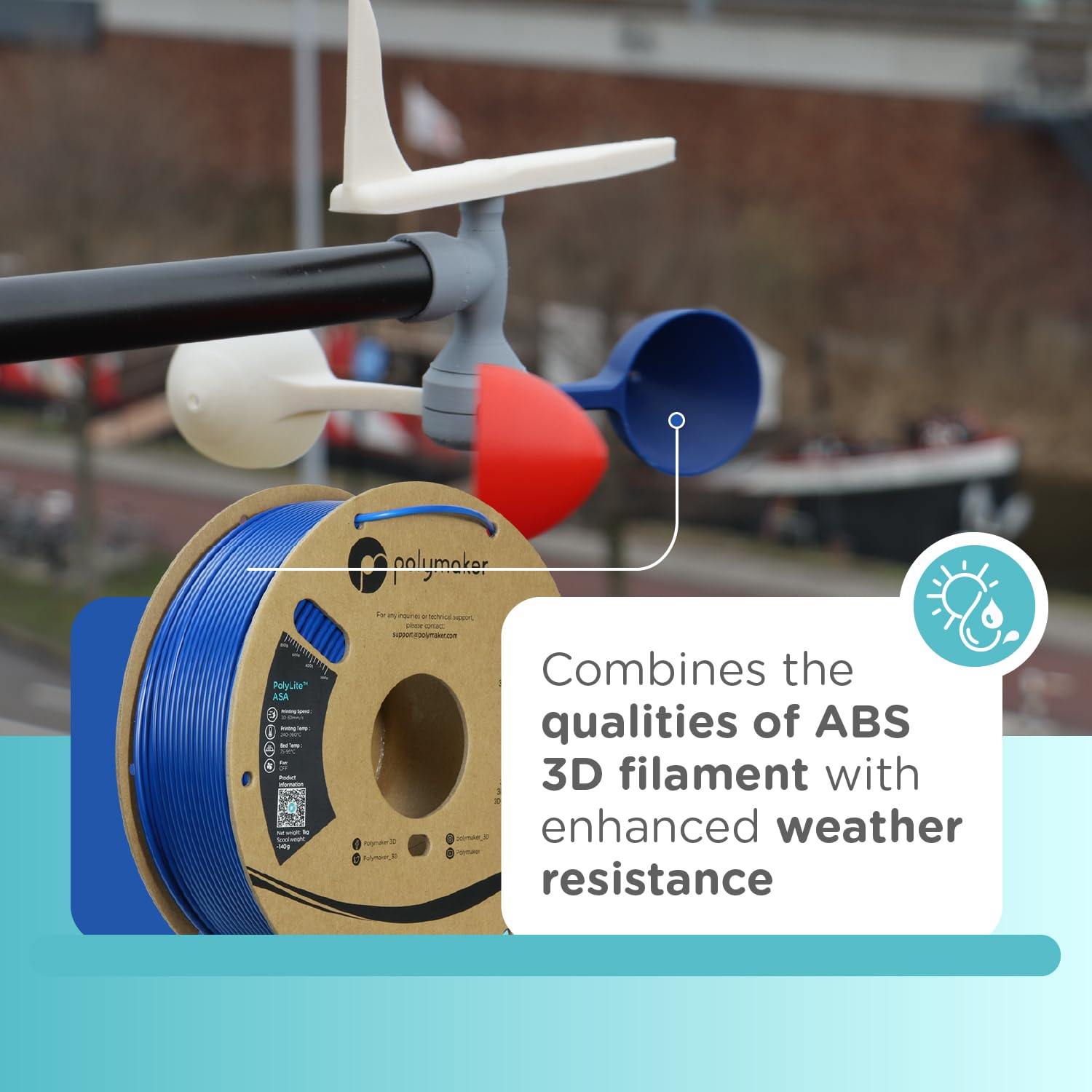 • PolyLite ASA ist eine Alternative zu ABS mit einer verbesserten Wetterbeständigkeit. Seine UV-Beständigkeit und seine ausgezeichneten mechanischen Eigenschaften machen es zur perfekten Wahl für reale Anwendungen.PolyLite deckt die gängigsten