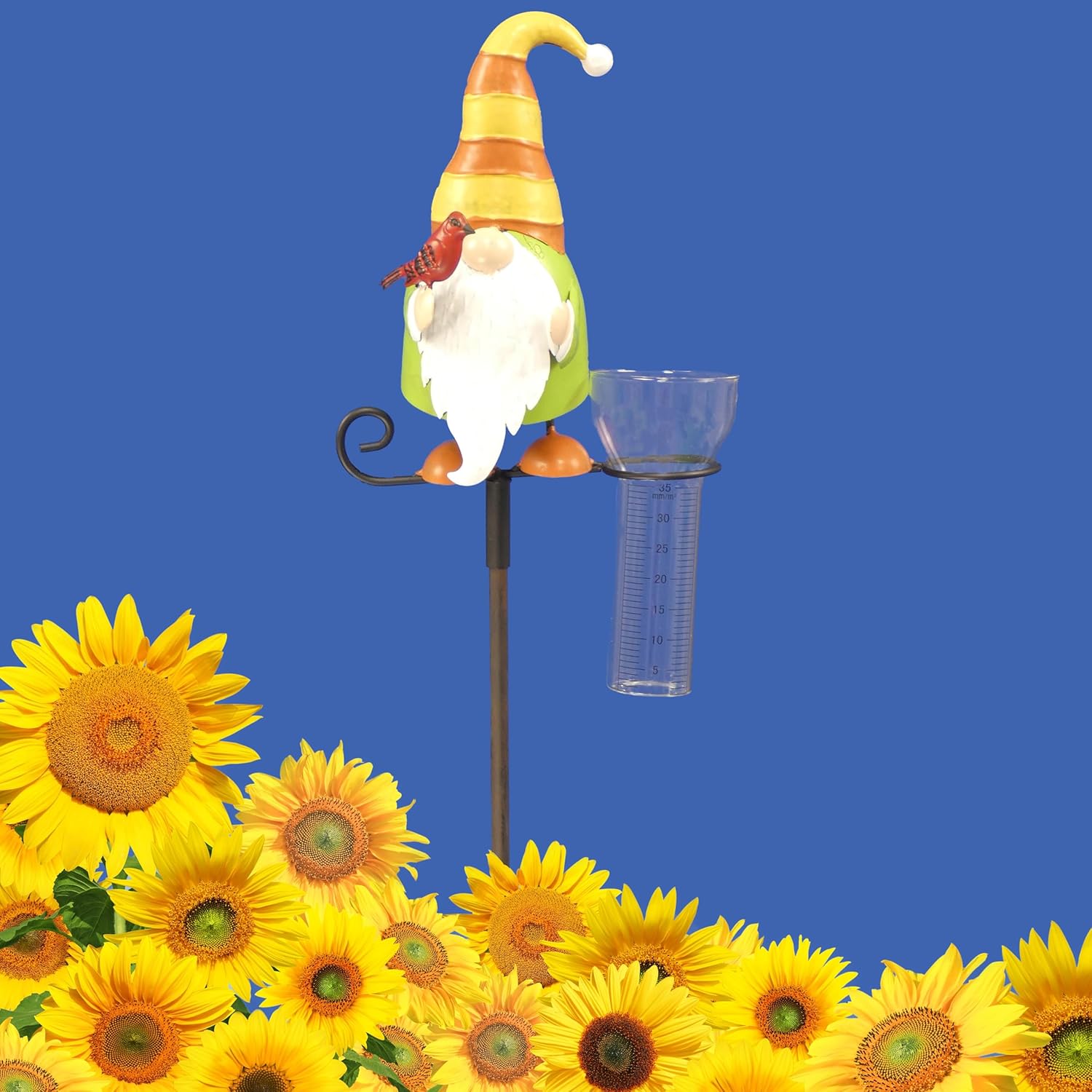 • Witziger Regenmesser bzw. Niederschlagsmesser oder auch Pluviometer mit einem lustigen Gartenzwerg bzw. Gnom.