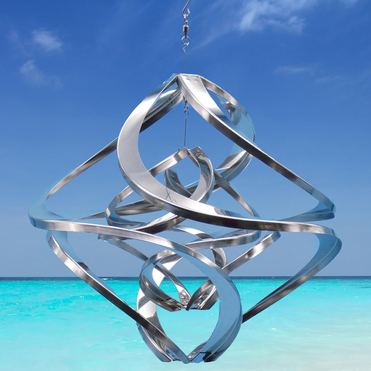 - Traumhafter DOPPEL-HURRIKAN als Windspiel aus rostfreiem Edelstahl - der Winddancer kann das ganze Jahr über im Garten bleiben.
