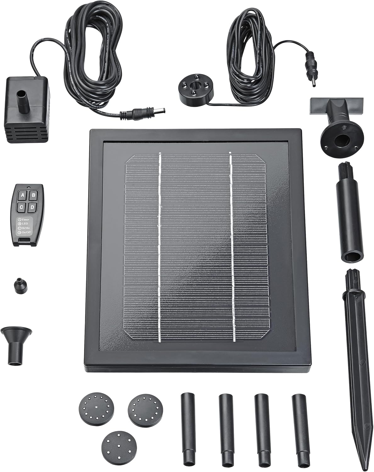 - Einfach installiert lassen sich mit den 4 verschiedenen Düsenköpfen dieses Wasserspiel-Solar-Sets unterschiedliche Wasserbilder erschaffen