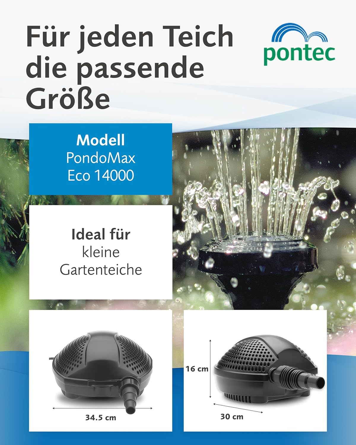 - Förderleistung von 5000 l/h bei nur 60 Watt Leistungsaufnahme!