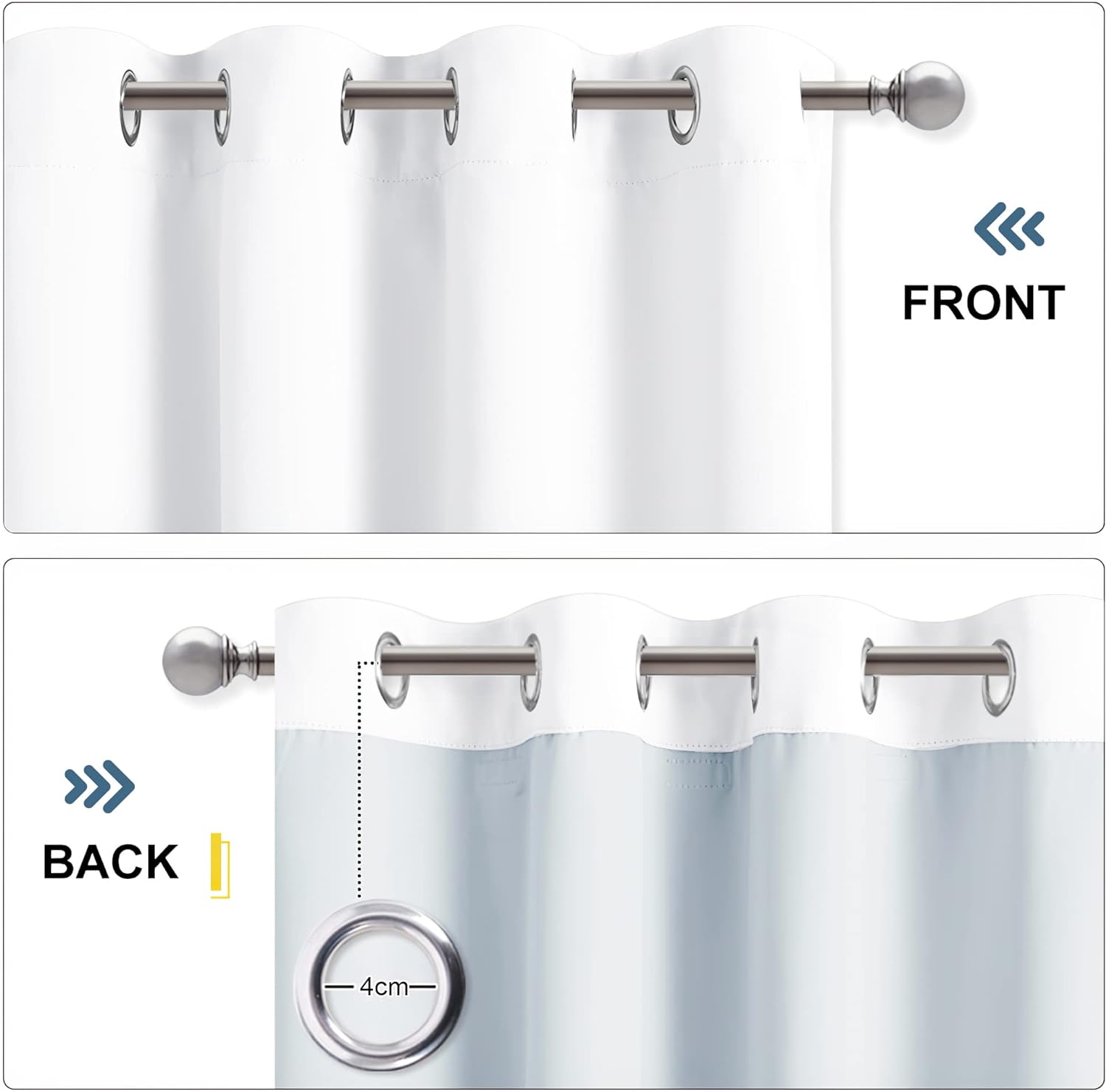 - Das Paket: Verkauft als zwei Stücke. Höhe 240 cm x Breite 132 cm für pro Stück. (Die Höhe wird von dem Oberteil der Ösen gemessen.) Es gibt 3 Lagen zusammen: 1 Lage vorne (Weiss), 1 Lage hinten (Grau-weiss) & 1 abnehmbares Filzfutter in der Mitte.