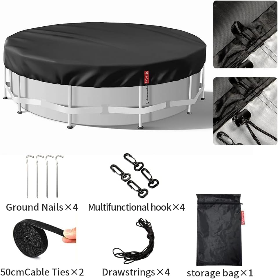 - 【MEHRERE VERWENDUNGEN】: Diese runde Poolabdeckung ist nicht nur auf Pools beschränkt, sondern kann auch zum Schutz von Trampolinen, Zelten und anderen Outdoor-Geräten verwendet werden und bietet eine praktische und multifunktionale Lösung für