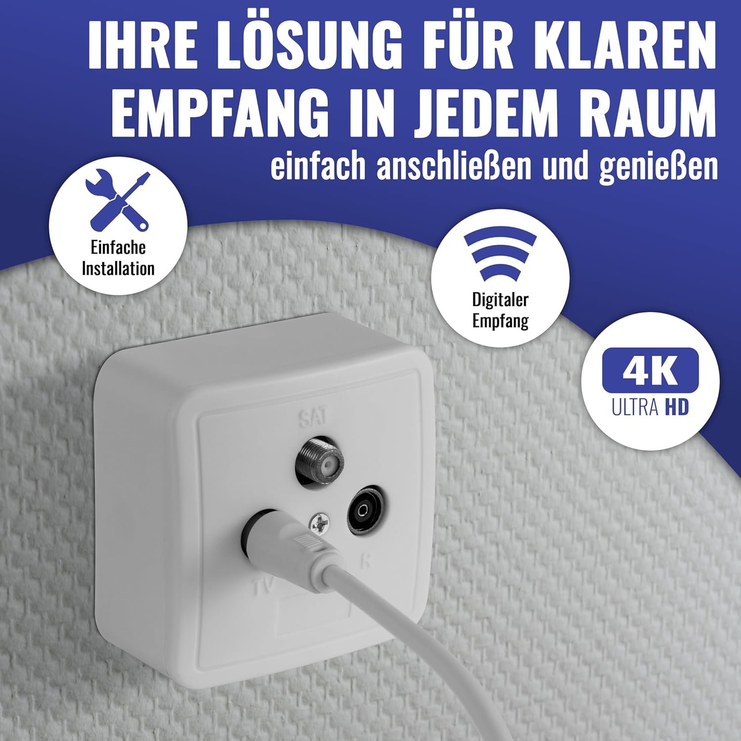 - Die Stichdose ist geeignet für: HDTV, Full HD, Ultra HD 4K, 3D, uvm.