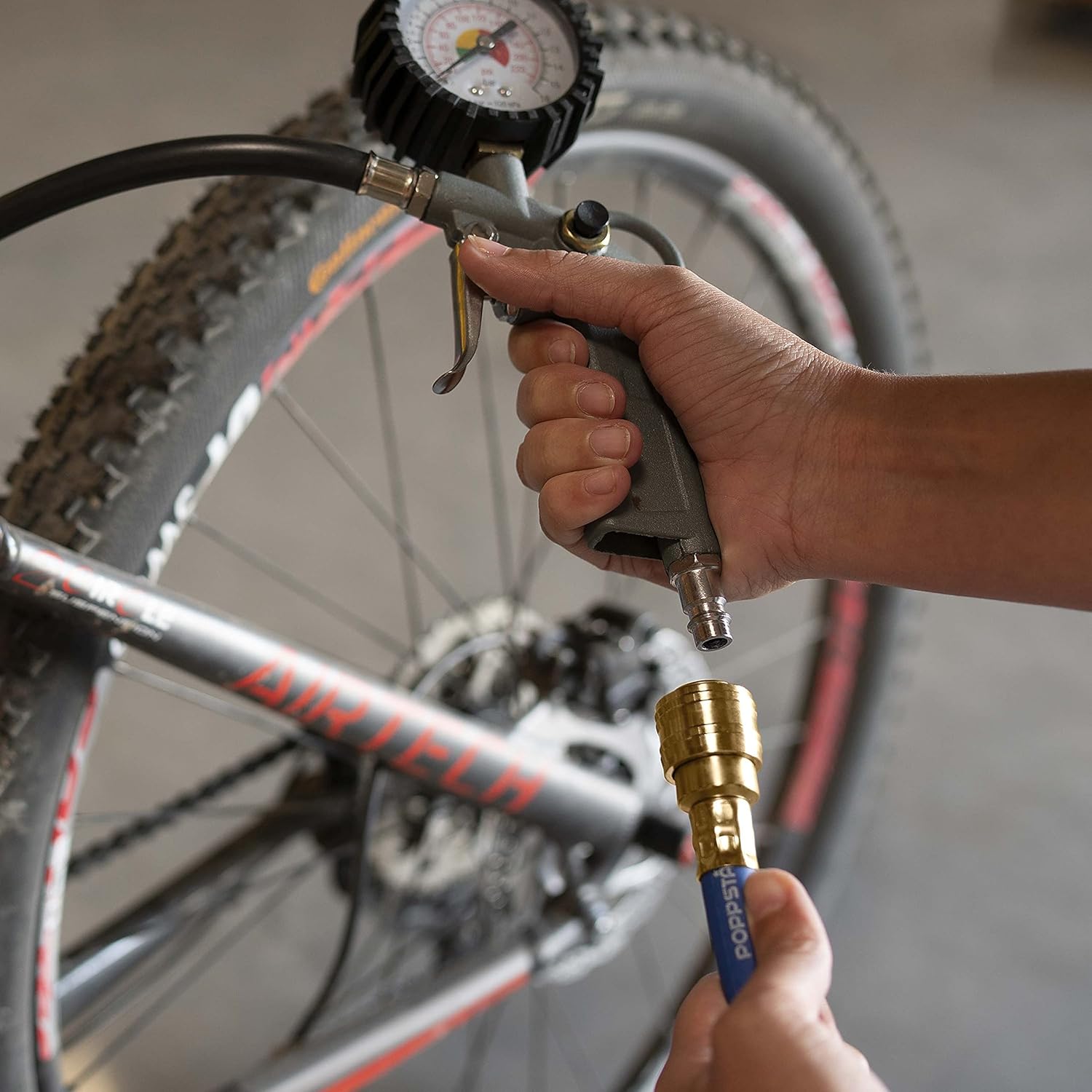 • Standard-Anschlüsse NW 7,2 Schnellkupplung und Schlauchtülle aus Messing langlebig und rostbeständig, Kompressorschlauch mit vielen Marken kompatibel