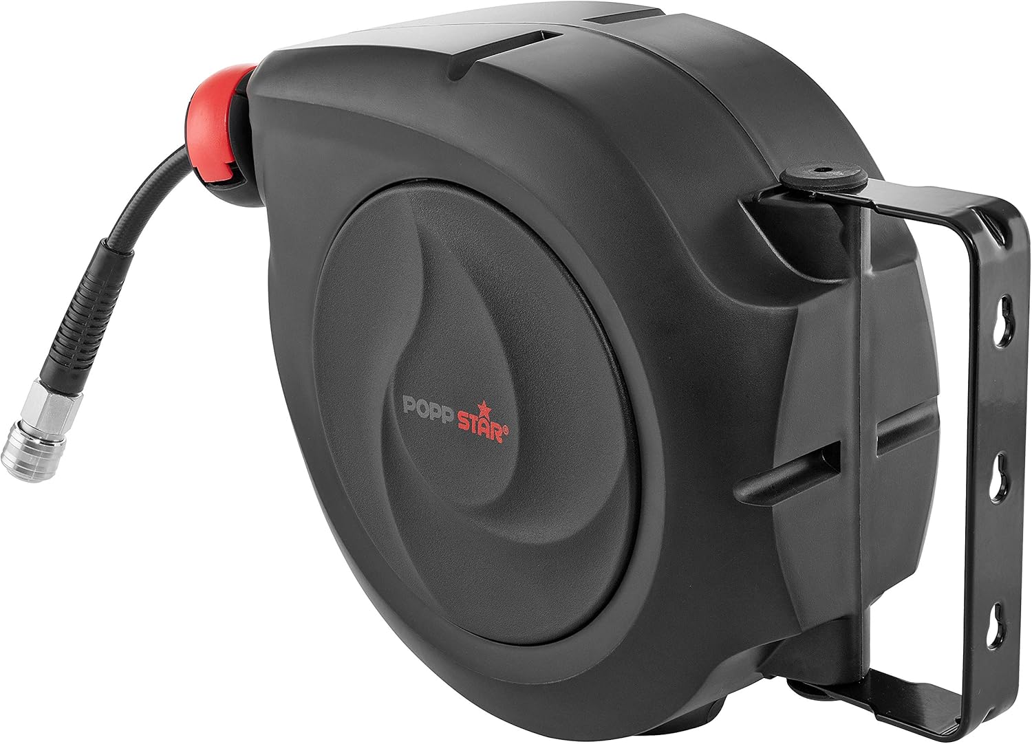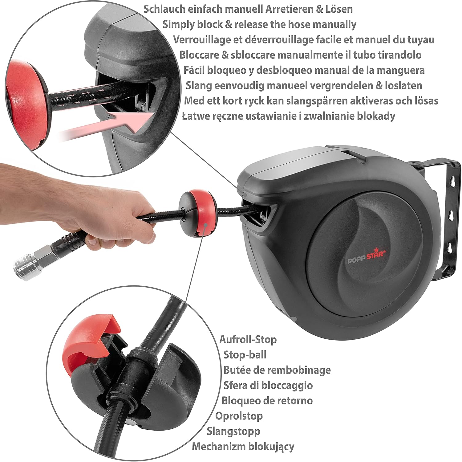 - Schlauchaufroller m. Aufrollautomatik, Luftschlauch Einzug mit Rücklauf-Stopp: einfaches manuelles Arretieren und Lösen des Schlauches