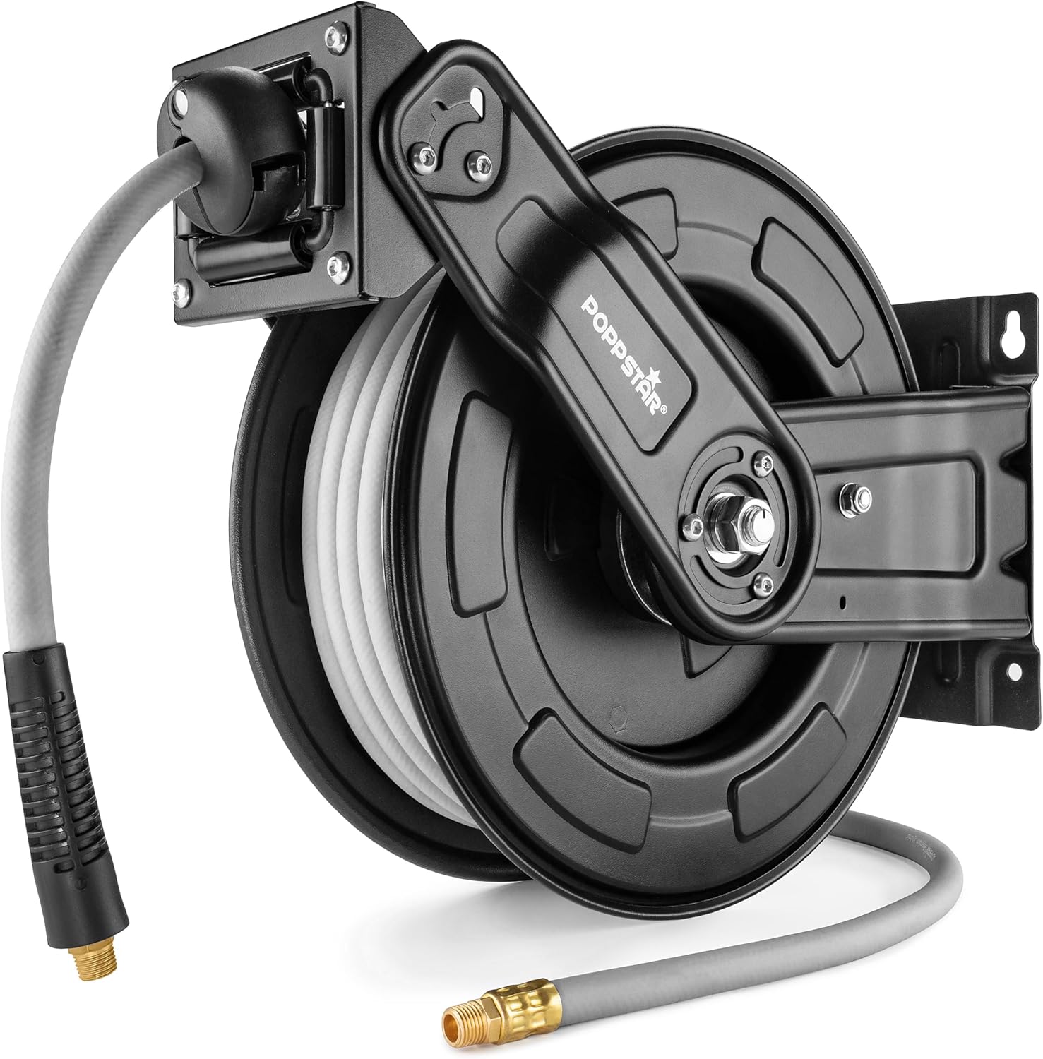 - Druckluft Schlauchroller robust m. Aufroll-Stopp: Schlauch an verschiedenen Stellen arretierbar, Druckluftschlauch aus PVC mit praktischem Knickschutz