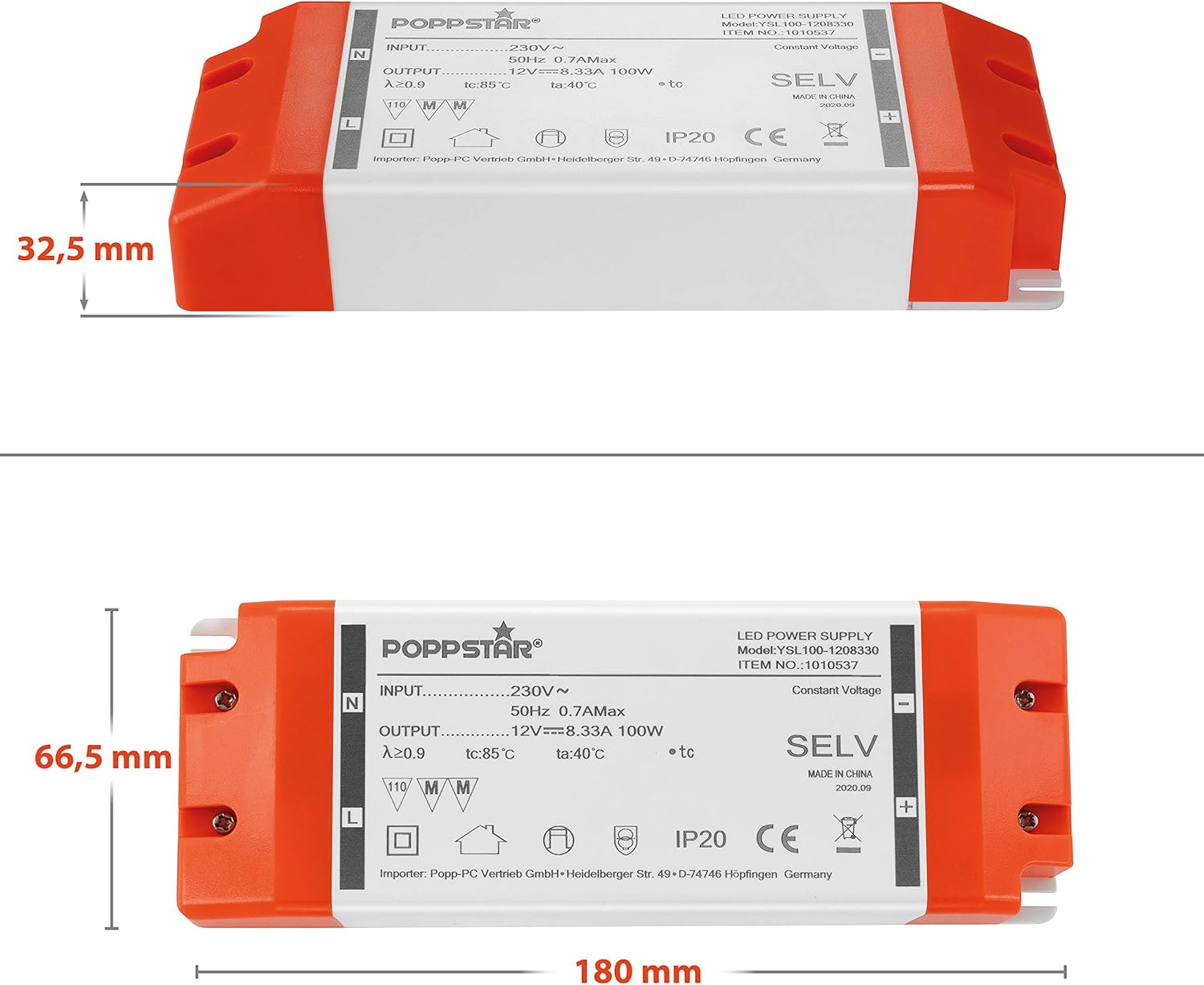 - Trafo für LED Streifen, Masse gesamt: 180*66,5*32,5mm, verwendbar bis 90% relative Luftfeuchtigkeit, Temperaturbereich bei Betrieb: -10 bis 40°C