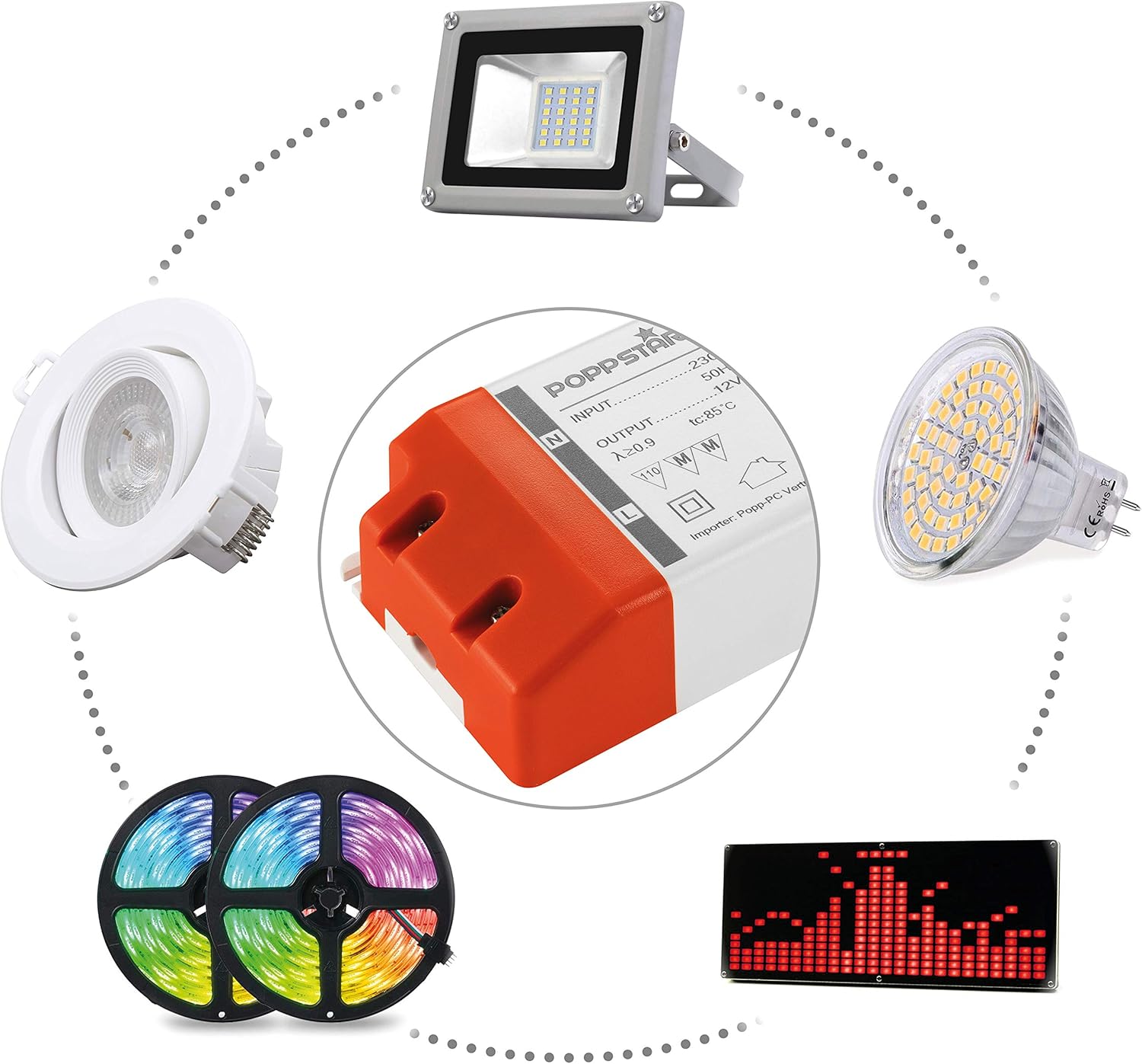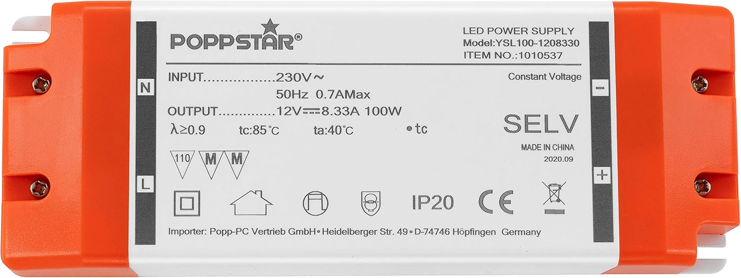 - Lieferumfang: 1 Trafo für LED Licht (Eingang 50Hz 220 V - 240 V AC 0,7 A / Ausgang 12 Volt 8,33 A max. 100 Watt)