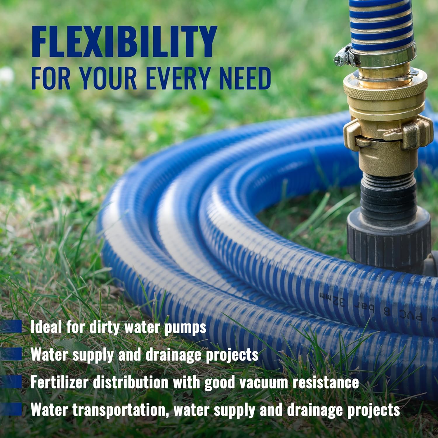 - Abriebfester, wetterfester, UV-beständiger, phthalatfreier Wasserschlauch 32mm: äusserst robust, vor Abknicken geschützt, ideal als Tauchpumpenschlauch